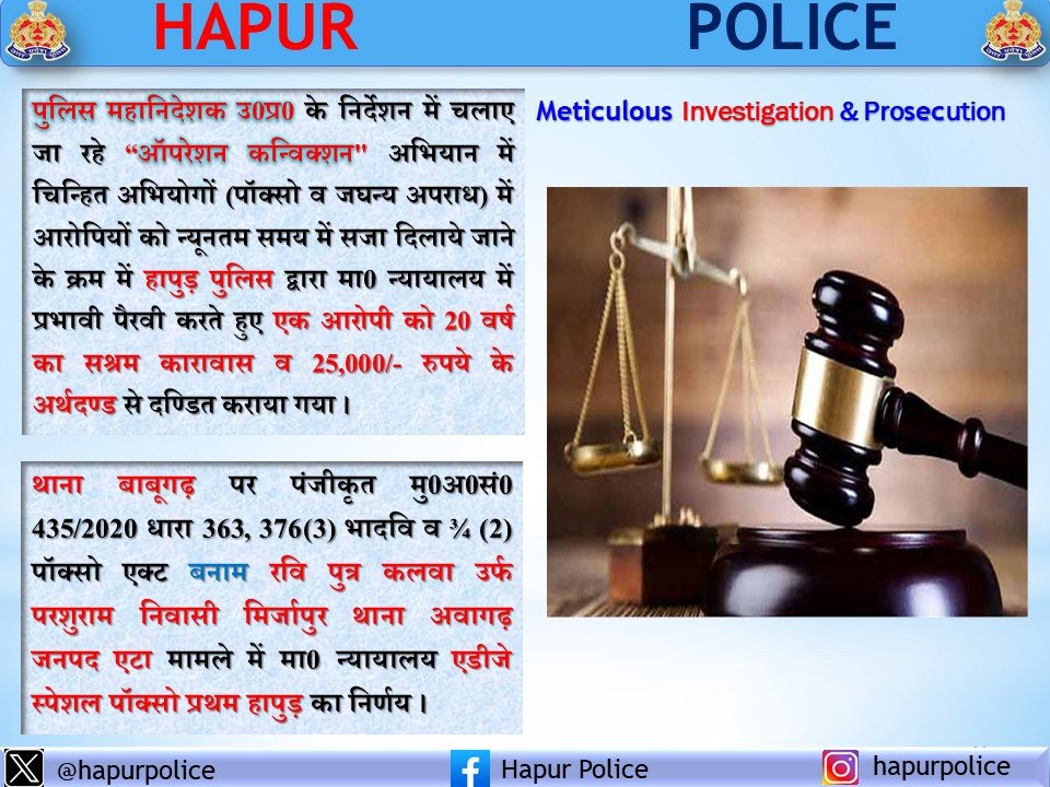 नाबालिग से दुष्कर्म के अभियुक्त को 20 वर्ष का कारावास Featured Hapur City News || हापुड़ शहर न्यूज़ नाबालिग से दुष्कर्म के अभियुक्त को 20 वर्ष का कारावास Satya Prakash Seeman December 5, 2024 नाबालिग से दुष्कर्म के अभियुक्त को 20 वर्ष का कारावासहापुड, सीमन (ehapurnews.com): ऑपरेशन कन्विक्शन” अभियान में चिन्हित...Read More