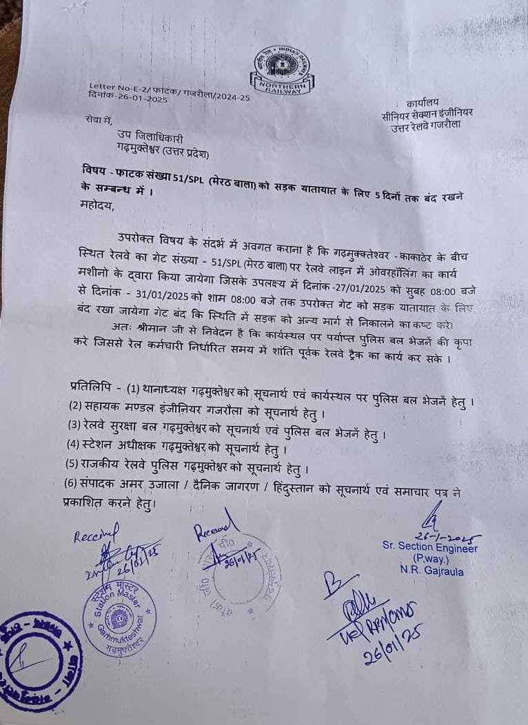 गढ़: पांच दिनों तक बंद रहेगा मेरठ वाला रेलवे फाटक Featured गढ़: पांच दिनों तक बंद रहेगा मेरठ वाला रेलवे फाटक Satya Prakash Seeman January 26, 2025 हापुड़, सीमन (ehapurnews.com): जनपद हापुड़ के गढ़मुक्तेश्वर काकाठेर के बीच स्थित रेलवे फाटक 51/एसपीएल मेरठ वाला 27...Read More