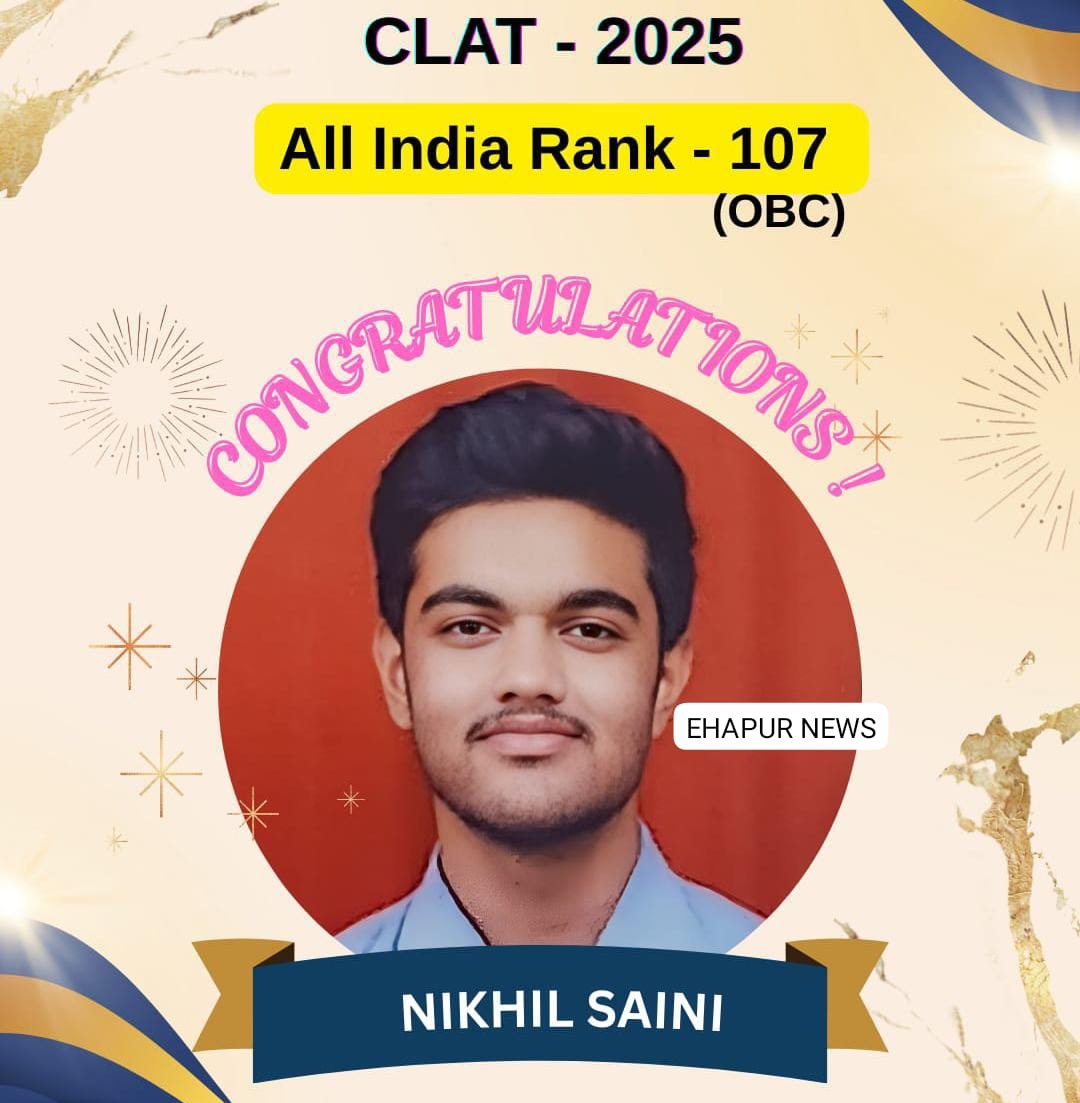 CLAT-2025 में अखिल भारतीय स्तर पर निखिल ने हासिल की 107वीं रैंक Featured Hapur City News || हापुड़ शहर न्यूज़ CLAT-2025 में अखिल भारतीय स्तर पर निखिल ने हासिल की 107वीं रैंक Satya Prakash Seeman December 24, 2025 CLAT-2025 में अखिल भारतीय स्तर पर निखिल ने हासिल की 107वीं रैंक हापुड़, सीमन (ehapurnews.com): हापुड़ की...Read More
