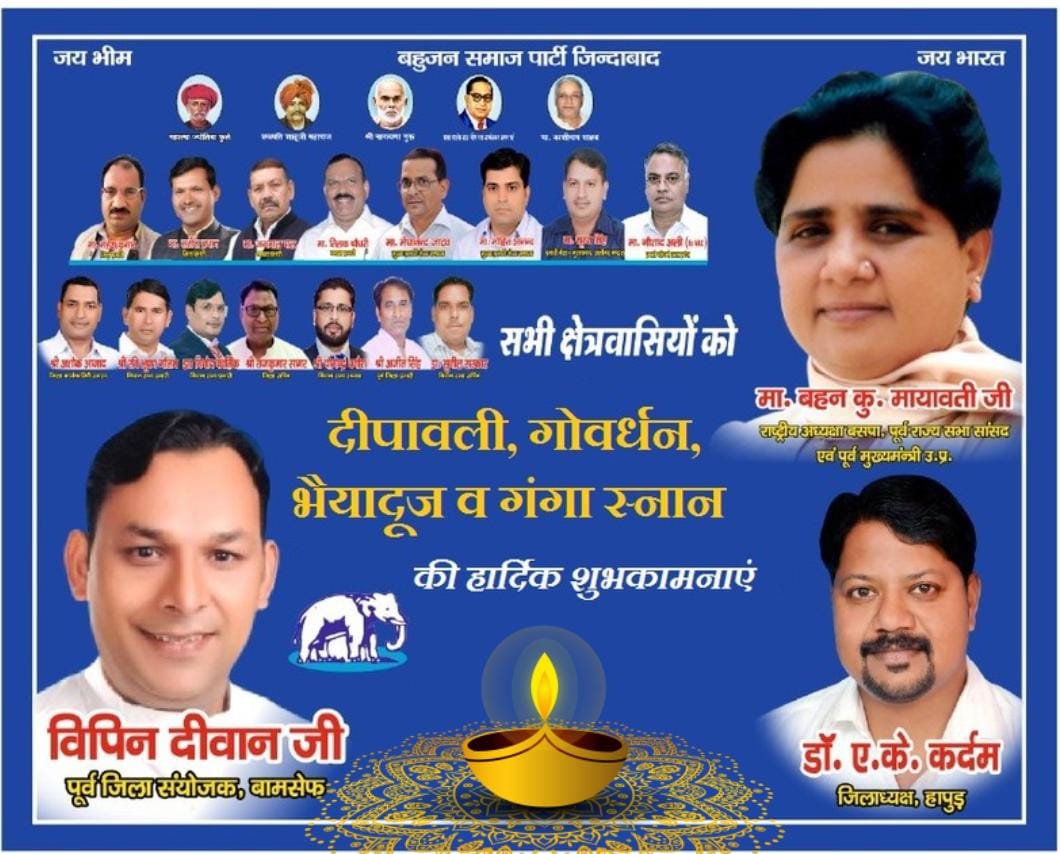 बामसेफ के पूर्व जिला संयोजक विपिन दीवान की ओर से सभी क्षेत्रवासियों को दीपावली की हार्दिक शुभकामनाएं Featured Hapur City News || हापुड़ शहर न्यूज़ बामसेफ के पूर्व जिला संयोजक विपिन दीवान की ओर से सभी क्षेत्रवासियों को दीपावली की हार्दिक शुभकामनाएं Satya Prakash Seeman October 19, 2025 Read More
