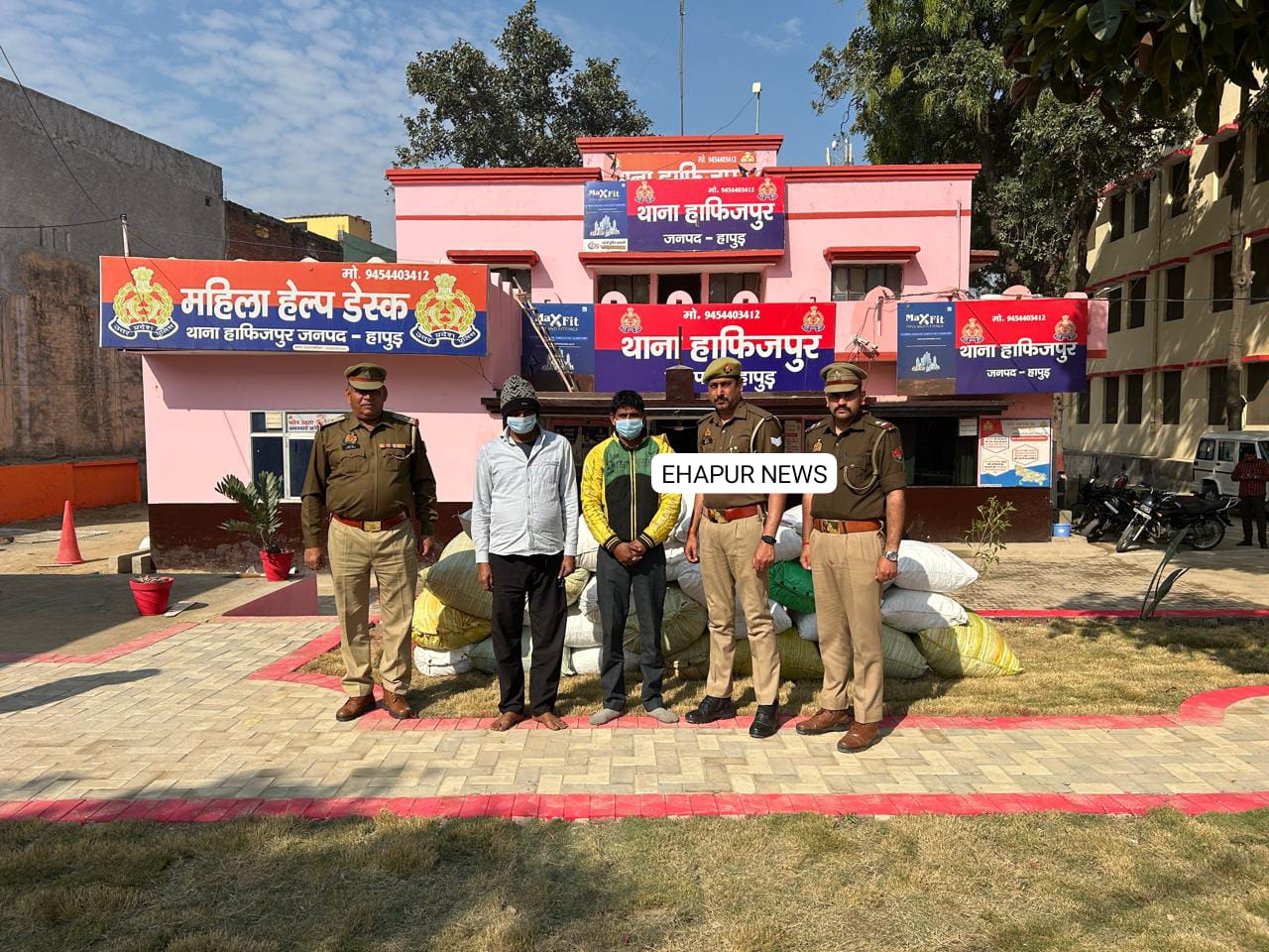 हापुड़, सीमन (ehapurnews.com): जनपद हापुड़ के थाना हाफिजपुर तथा एएनटीएफ मेरठ की संयुक्त पुलिस टीम ने कार्रवाई करते हुए दो अंतर्राज्यीय मादक पदार्थ तस्करों को गिरफ्तार किया है जिनके कब्जे से पुलिस ने करीब चार करोड़ रुपए कीमत का आठ कुंतल एक किलोग्राम अवैध गांजा, नकदी, तीन मोबाइल, दस्तावेज, तस्करी में इस्तेमाल केंटर बरामद किया है। गिरफ्तार किए गए आरोपी उड़ीसा राज्य से अवैध गांजे की तस्करी कर उत्तर प्रदेश के विभिन्न जनपदों और दिल्ली-एनसीआर में सप्लाई करते थे। आर्थिक मुनाफा कमाने के लिए आरोपी इस गोरखधंधे को अंजाम दे रहे थे। पुलिस ने कार्रवाई करते हुए धर्मवीर पुत्र बिन्दर पुत्र ओमपाल निवासी गांव खानपुर कलां थाना गोहाना सदर जनपद सोनीपत हरियाणा, हाल निवासी कोट मोहल्ला सोनीपत हरियाणा तथा सफेद सिंह पुत्र रन सिंह निवासी गांव भटगांव थाना सदर सोनीपत जनपद सोनीपत हरियाणा को गिरफ्तार कर जेल भेज दिया है।
