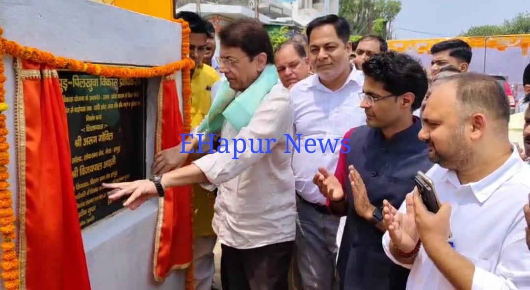 हापुड़, सीमन (ehapurnews.com): हापुड़-पिलखुवा विकास प्राधिकरण के तत्वावधान में समग्र विकास योजना के अन्तर्गत आर० सी० सी० नाले व पुलिया के निर्माण कार्य का शिलान्यास मंगलवार को हापुड़ में साँसद अरुण गोविल व विधायक विजयपाल आढ़ती ने किया। यह नाला हापुड़-गढ़ रोड पर रेलवे क्रासिंग से ततारपुर बाईपास तक बनाया जाएगा और नाले के निर्माण पर 803.21 लाख रुपए खर्च होंगे।
