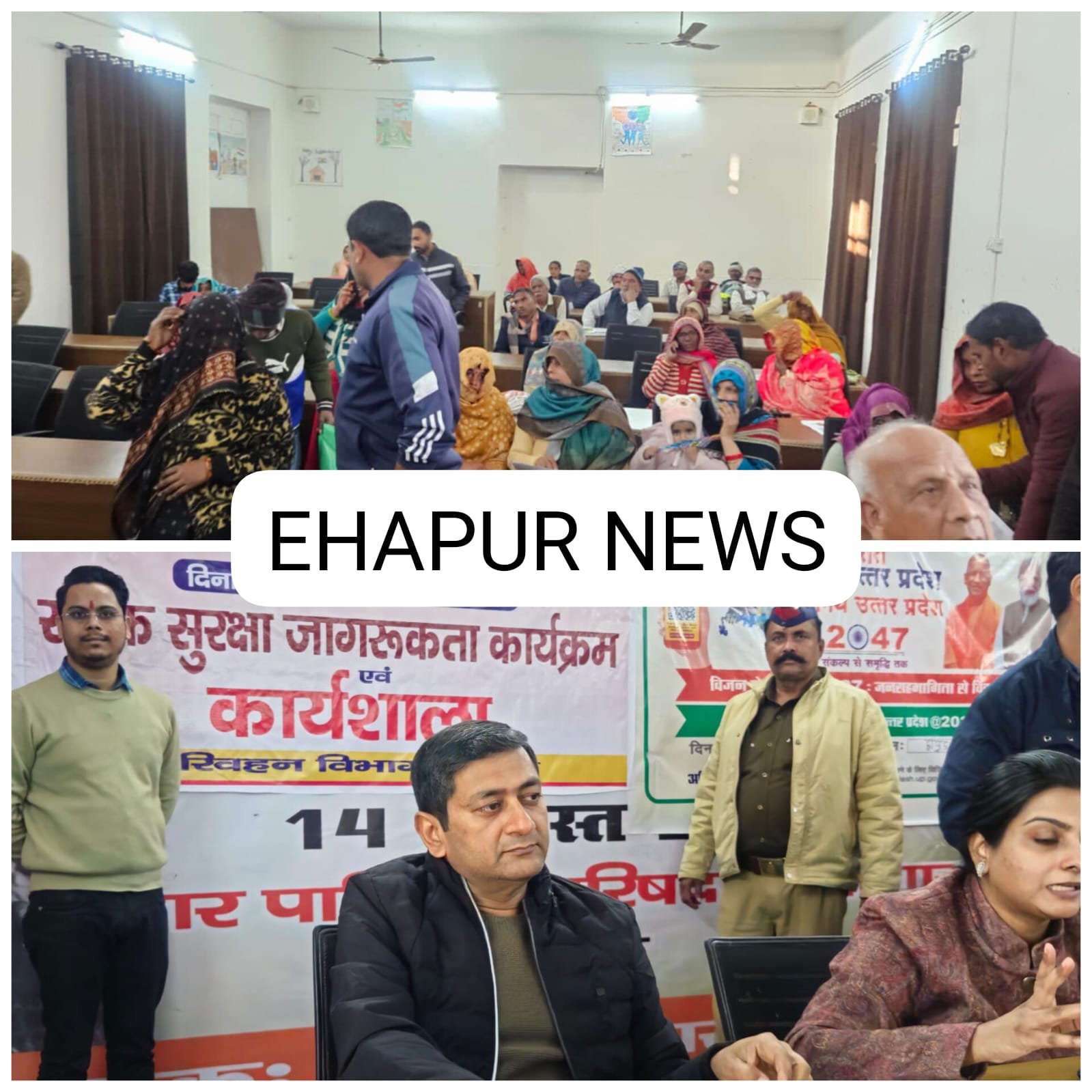 हापुड़, सीमन/ अमित कुमार (ehapurnews.com): हापुड़ के नगर पालिका सभागार में ग्रामीण और शहरी नागरिकों के साथ सड़क सुरक्षा जागरूकता संगोष्ठी की गई। इस अवसर पर ए आर टी ओ ई रमेश कुमार चौबे ने यातायात नियमों की जानकारी देते हुए बताया कि सड़क पर वाहन चलाते समय किस प्रकार से सावधानी बरतनी चाहिए, बाइक चलाते समय BIS मानक का ही हेलमेट प्रयोग करें।कोहरे में सावधानी से वाहन चलाए। इसके अतिरिक्त हिट एंड रन योजना के बारे में जानकारी दी गई। साथ ही यह भी बताया कि रात्रि में वाहन चलाते समय इंडिकेटर लाइट, पार्किंग लाइट आदि का किस प्रकार प्रयोग करें। इसके अतिरिक्त प्रवर्तन कार्यवाही करते हुए गलत पार्किंग, ओवर स्पीड, गलत दिशा में वाहन चलाने आदि में 81 वाहनों का चालान किया गया।