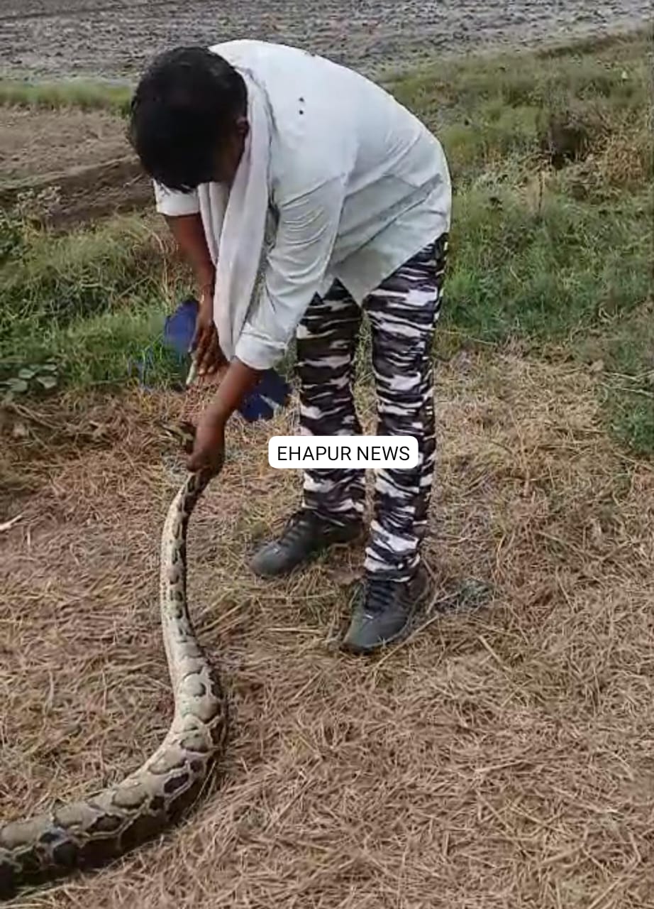 हापुड़, सीमन (ehapurnews.com): जनपद हापुड़ के बाबूगढ़ क्षेत्र के गांव नली हुसैनपुर में सोमवार को 10 फीट लंबा विशाल अजगर निकलने से ग्रामीणों में हड़कंप की स्थिति बन गई। उन्होंने तुरंत डायल 112 को सूचना दी। वहीं सर्प मित्र सत्येंद्र शर्मा को भी मामले की सूचना दी जिसके बाद सूचना पाकर सर्प मित्र सत्येंद्र शर्मा मौके पर पहुंचे और उन्होंने कड़ी मशक्कत के पश्चात ग्रामीणों की सहायता से अजगर का रिस्क्यू कर उसे सुरक्षित स्थान पर छोड़ दिया।