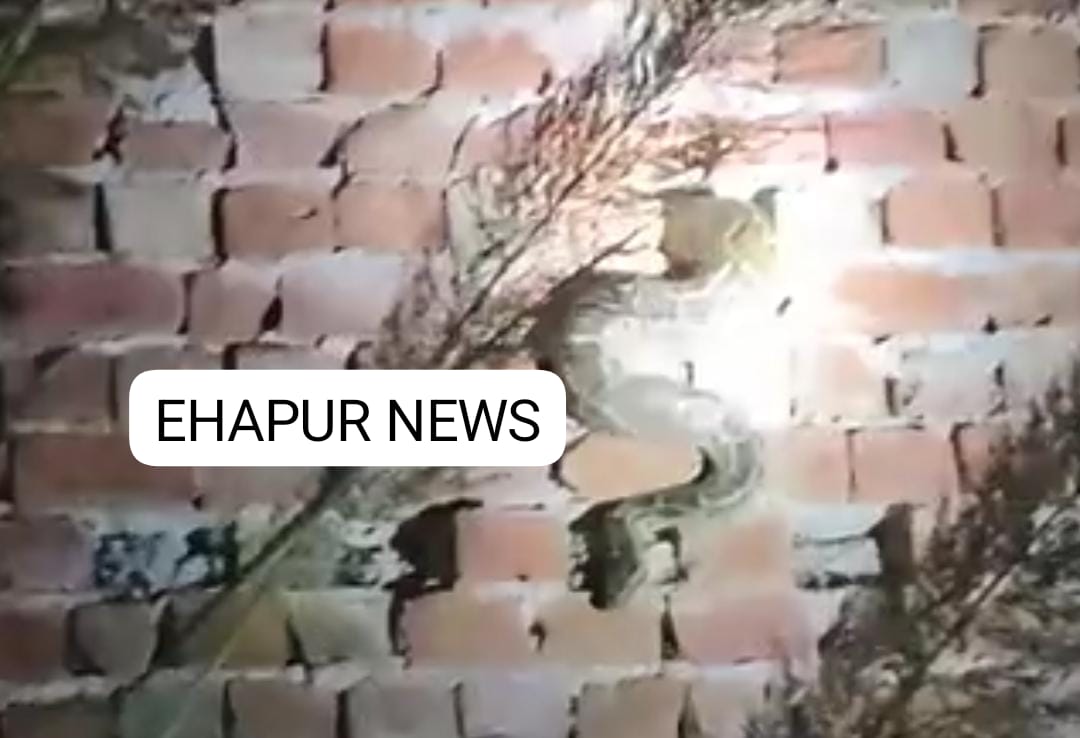 हापुड़, सीमन (ehapurnews.com): जनपद हापुड़ के धौलाना कस्बे में एक नवनिर्मित मकान में शनिवार की रात करीब 15 फीट लंबा विशाल अजगर निकल आया जिसे देखकर लोगों के होश उड़ गए। सुमित्रा देवी अस्पताल के पास दीवार पर विशाल अजगर को देख लोगों के होश उड़ गए। लोगों ने डायल 112 और पुलिस को मामले से अवगत कराया। इस दौरान लोगों में हड़कंप मचा रहा।