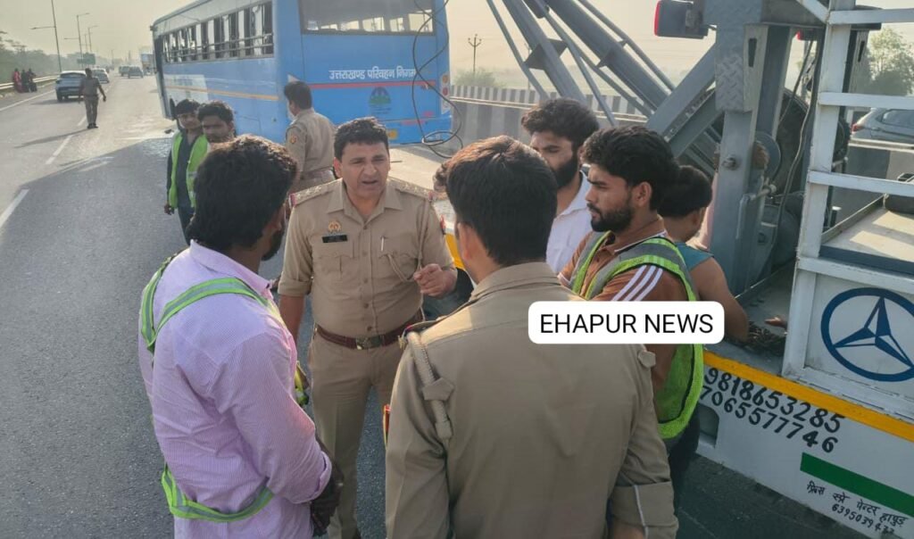 हापुड़, सीमन/संजय कश्यप (ehapurnews.com):जनपद हापुड़ के थाना देहात क्षेत्र में मंसूरपुर कट के पास रविवार की सुबह हुए सड़क हादसे में एक दर्जन लोग घायल हो गए। बस और ट्रक की भिड़ंत के दौरान चीख पुकार मच गई। बताया जा रहा है कि ट्रक ने अचानक ब्रेक लगा दिए जिसके कारण पीछे से आ रही उत्तराखंड डिपो की बस ट्रक से जा भिड़ी। इस दौरान चीख पुकार मच गई। सूचना पर देहात थाना प्रभारी निरीक्षक नीरज कुमार पुलिसबल के साथ मौके पर पहुंचे और वाहनों में सवार लोगों का हाल जाना और उन्हें अस्पताल पहुंचाया।मामला रविवार का है जब एक बस दिल्ली से मुरादाबाद की ओर जा रही थी। जैसे ही वह देहात क्षेत्र के मंसूरपुर कट के पास पहुंची तो आगे चल रहे ट्रक से जा भिड़ी। इस दौरान बस में बैठी सवारियों में चीख पुकार कर मच गई। बताया जा रहा है कि करीब एक दर्जन लोग इस दौरान घायल हो गए। पुलिस मामले की जांच कर रही है।