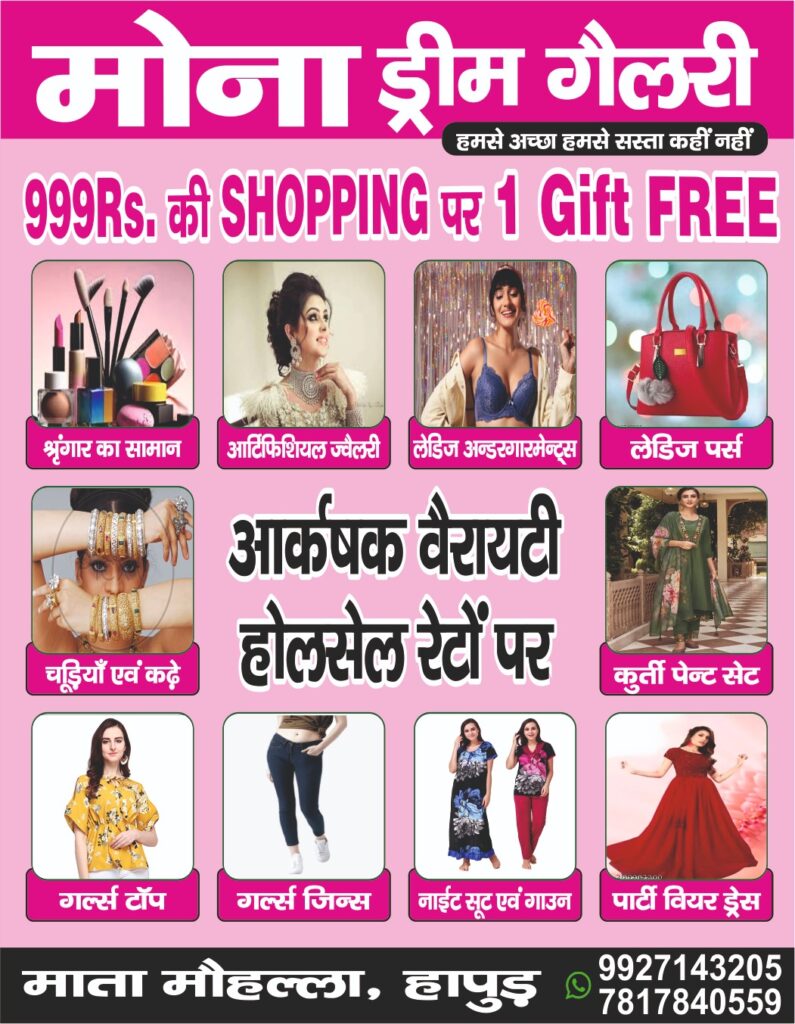 मोना ड्रीम गैलरी से 999/- की शॉपिंग पर 1 GIFT FREE: 9927143205, 7817840559