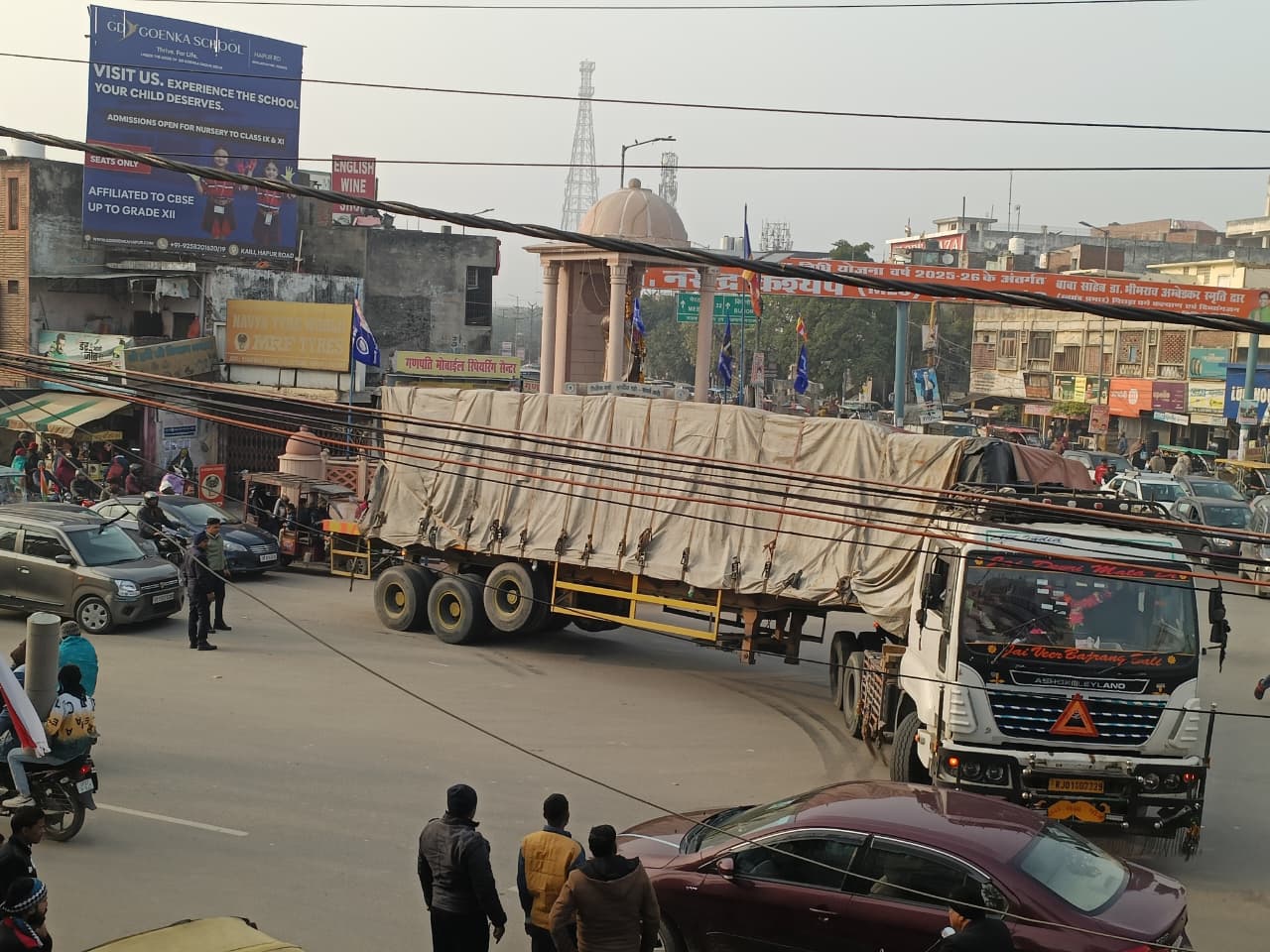 नो एंट्री में घुसा विशाल ट्रक बना जाम का कारण