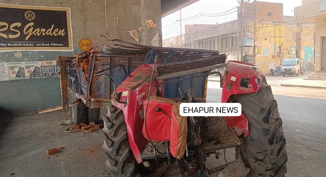 हापुड़, सीमन (ehapurnews.com): जनपद हापुड़ के थाना पिलखुवा कोतवाली क्षेत्र के पिलर नंबर 49 पर शनिवार को ईटों से भरी ट्रैक्टर ट्राली और ट्रक की भिड़ंत हो गई। सड़क हादसे के दौरान ट्रैक्टर दो भागों में बंट गया जबकि कुल चार लोग सड़क हादसे में घायल हो गए। सूचना पर पुलिस मौके पर पहुंची और क्षतिग्रस्त वाहनों को हाईवे से हटवाया।