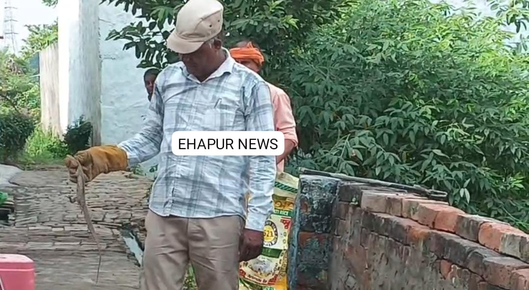 हापुड़, सीमन/ अमित कुमार (ehapurnews.com): जनपद हापुड़ के बाबूगढ़ क्षेत्र में भागीरथ फार्महाउस के पीछे एक चंदनगो निकल आई जिसे देखकर लोगों के होश उड़ गए। चंदनगो यहां से वहां भागने लगी जिसके बाद वनकर्मी रवि कुमार को मामले से अवगत कराया। सूचना पाकर पहुंचे वनकर्मी ने कड़ी मशक्कत के बाद दीवार के पीछे छिपी चंदनगो आखिर पकड़ लिया और उसका रेस्क्यू कर सुरक्षित स्थान पर पहुंचाया जिसके बाद सभी ने राहत की सांस ली।