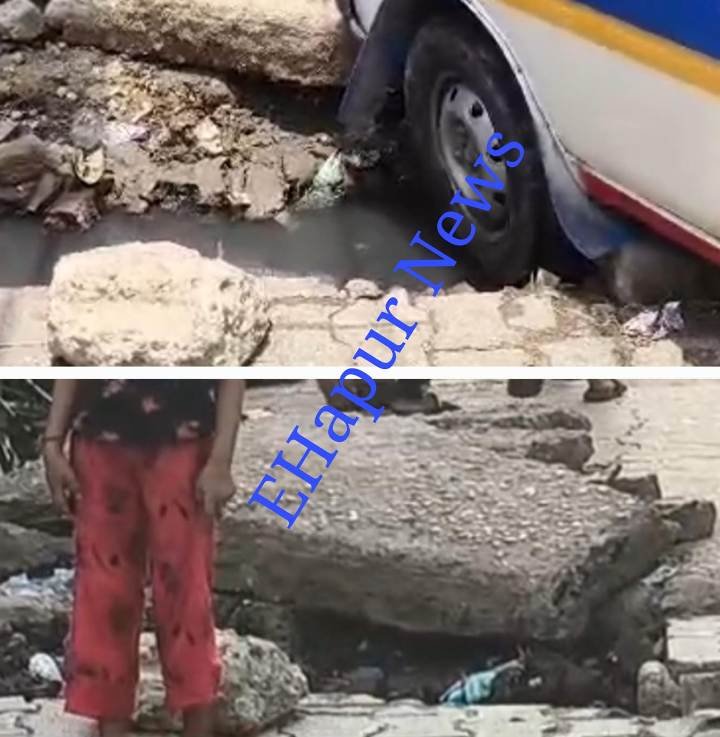 हापुड़, सीमन (ehapurnews.com): हापुड़ के मौहल्ला अम्बेडकर नगर में एक पुलिया के टूटा होने के कारक नागरिकों को भारी परेशानी का सामना करना पड़ रहा है और लोग गिर कर चोटिल हो रहे है। नगर पालिका हापुड़ सुनने को तैयार नहीं है। यह पुलिया मौहल्ले की गली नम्बर 8 से पटना बिजली व मुख्य मार्ग को जोड़ने वाले स्थान पर है। शुक्रवार को एक मरीज को लेने आई एम्बुलैंस भी टूटी पुलिया में फंस गई। नागरिकों ने बड़ी मशक्त के बाद एम्बुलेंस को बाहर निकाला।