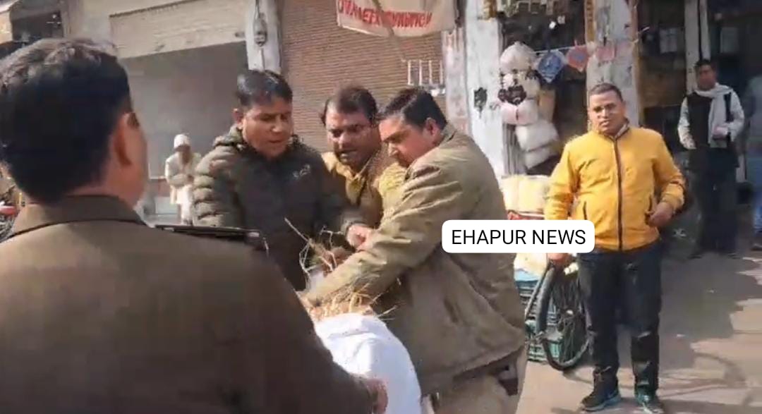 हापुड़, सीमन (ehapurnews.com): मध्य प्रदेश में बाबा साहब के कथित अपमान के विरोध में जिला कांग्रेस कमेटी के अनुसूचित विभाग के जिला अध्यक्ष ने कार्यकर्ताओं के साथ मिलकर हापुड़ की चंडी रोड पर मध्य प्रदेश के मुख्यमंत्री का पुतला दहन करने का प्रयास किया लेकिन इस दौरान नरेश भाटी और पुलिस में जमकर नोकझोंक हुई। उसके बाद पुलिस ने पुतला छीन लिया। कांग्रेसियों ने इस दौरान डॉक्टर भीमराव अंबेडकर के अपमान का जमकर विरोध किया।
