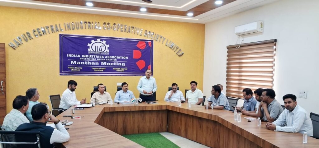 हापुड़, सीमन (ehapurnews.com): इंडियन इंडस्ट्रीज एसोसिएशन, धीरखेड़ा हापुड़ चैप्टर द्वारा चेयरमैन पवन शर्मा की अध्यक्षता में सोसाइटी भवन, धीरखेड़ा में एक महत्वपूर्ण मंथन बैठक का आयोजन किया गया। बैठक का मुख्य विषय मिडिल ईस्ट में जारी युद्ध के कारण भारतीय उद्योगों पर पड़ने वाले प्रभावों का विश्लेषण करना था।