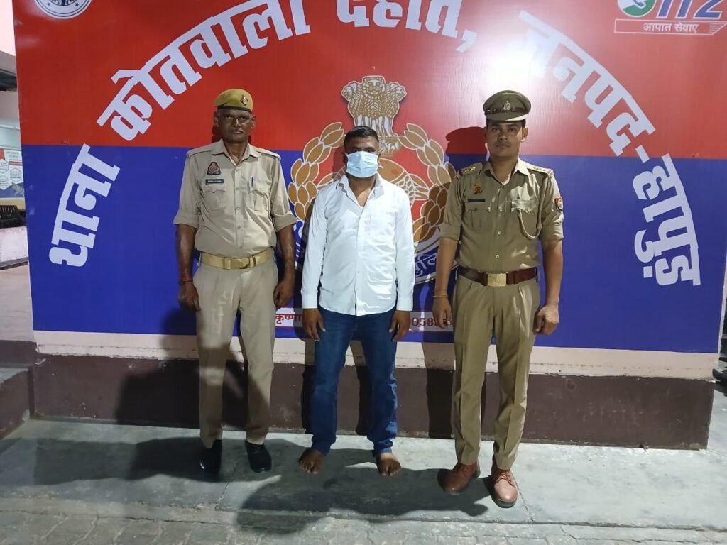 हापुड़ पुलिस द्वारा जनपद में अपराध की रोकथाम एवं वांछित अभियुक्तों की गिरफ्तारी हेतु चलाये जा रहे अभियान के अन्तर्गत थाना हापुड़ देहात पुलिस ने फर्जी दस्तावेज का उपयोग कर उत्तर प्रदेश होमगार्ड परीक्षा में शामिल होने वाले अभियुक्त को गिरफ्तार कर लिया।आरोपी जनपद बुलन्दशहर के थाना काकोड के गांव आजमपुर हुसैनपुर का छोटे लाल है।