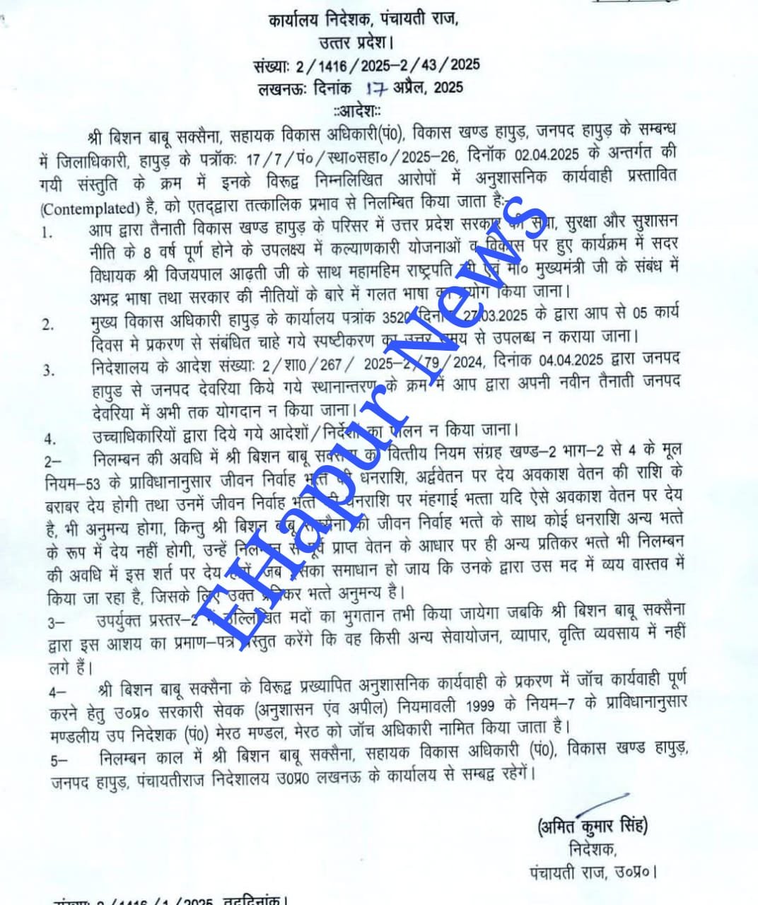 हापुड़ चेयरमैन पुष्पा देवी, पति श्रीपाल व पुत्र विशाल बसपा से निष्कासित, पूर्व सीएम की भतीजी को दहेज के लिए किया था प्रताड़ित Featured Hapur City News || हापुड़ शहर न्यूज़ हापुड़ चेयरमैन पुष्पा देवी, पति श्रीपाल व पुत्र विशाल बसपा से निष्कासित, पूर्व सीएम की भतीजी को दहेज के लिए किया था प्रताड़ित Pankaj Kashyap April 10, 2025 हापुड़, सीमन (ehapurnews.com): बहुजन समाज पार्टी ने अनुशासनहीनता के चलते हापुड़ नगर पालिका परिषद की चेयरमैन पुष्पा...Read More