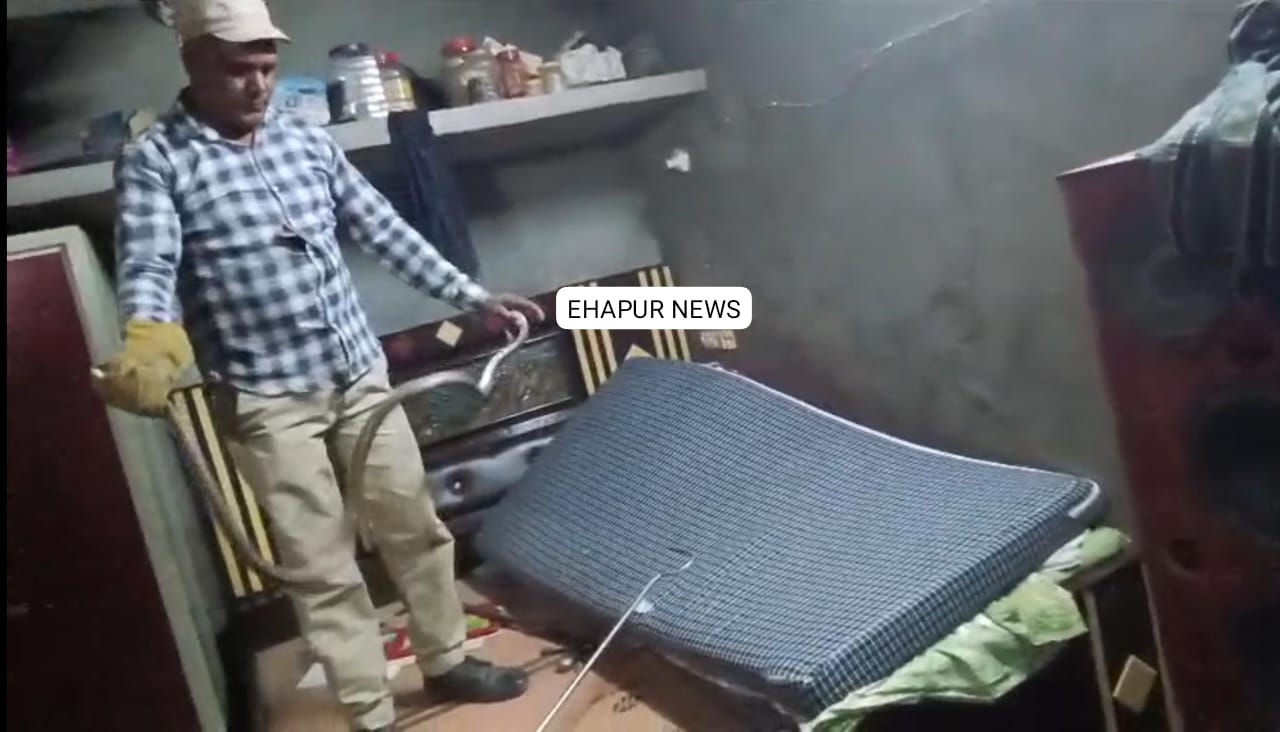 गांव उपेड़ा में परिजन अपने घर में मौजूद थे। तभी उन्हें हल्की सी आवाज की आहट हुई। जब उन्होंने गौर से सुना और टांड़ पर झांका तो उनके होश उड़ गए। टांड़ पर करीब 5 फीट लंबा रेट स्नेक सांप बैठा हुआ था जिसके बाद वन विभाग ने कड़ी मेहनत के पश्चात सांप को पकड़कर सुरक्षित स्थान पर छोड़ दिया।