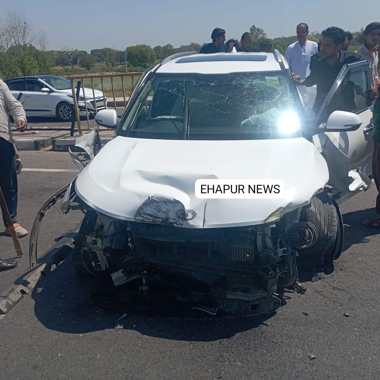 हापुड़, सीमन (ehapurnews.com): जनपद हापुड़ के बाबूगढ़ क्षेत्र के बछलौता फ्लाईओवर पर सोमवार को एक सफेद रंग की गाड़ी अनियंत्रित होकर डिवाइडर से टकरा गई। गनीमत रही कि किसी को चोट नहीं आई। हालांकि इस दौरान गाड़ी क्षतिग्रस्त हो गई। सूचना पर पुलिस मौके पर पहुंची और क्षतिग्रस्त वाहनों को हाईवे से हटाया।