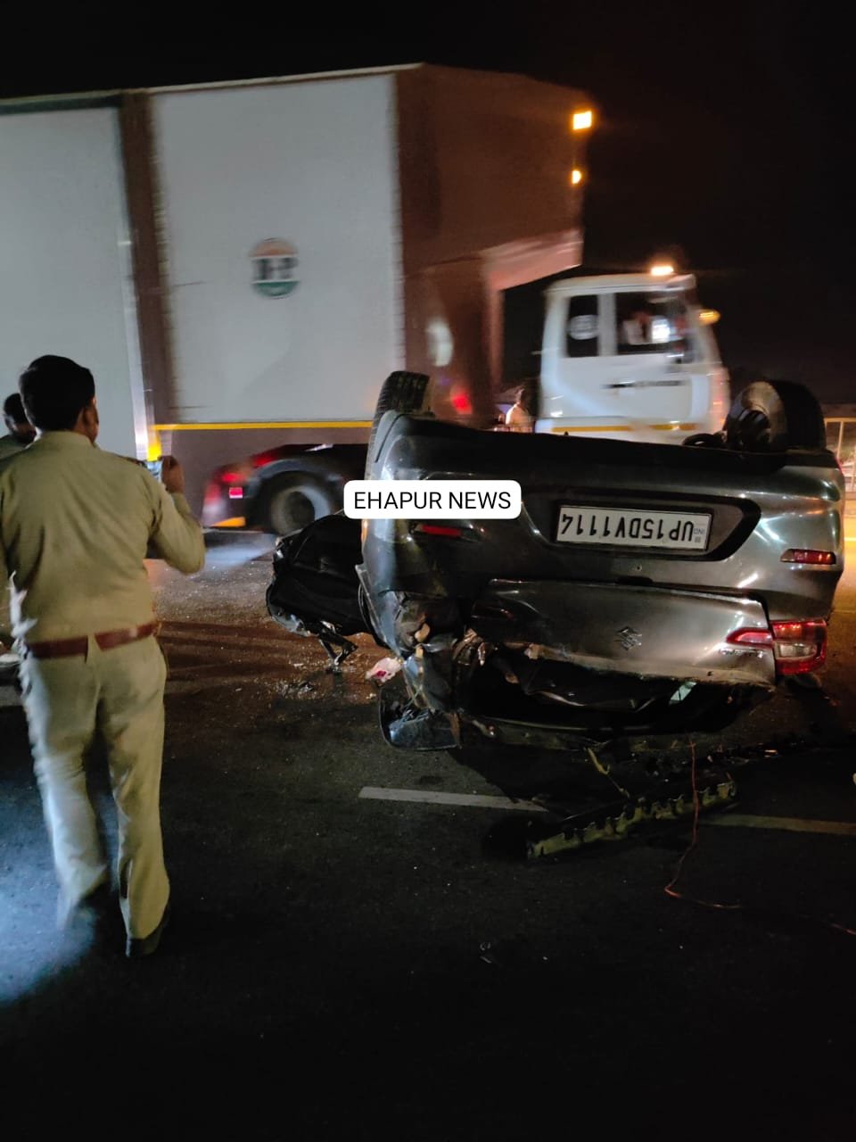 हापुड़, सीमन (ehapurnews.com): जनपद हापुड़ के बाबूगढ़ क्षेत्र के राष्ट्रीय राजमार्ग-9 पर स्थित उपेड़ा फ्लाईओवर पर बीती रात करीब 11:00 बजे हुए सड़क हादसे के दौरान एक गाड़ी अनियंत्रित होकर पलट गई। सड़क हादसे के दौरान गाड़ी में सवार दो लोगों में से एक गंभीर रूप से घायल हो गया जिसे हापुड़ के देवनंदिनी अस्पताल में भर्ती कराया। पुलिस मामले की जांच कर रही है। पुलिस ने गाड़ी को कब्जे में ले लिया।