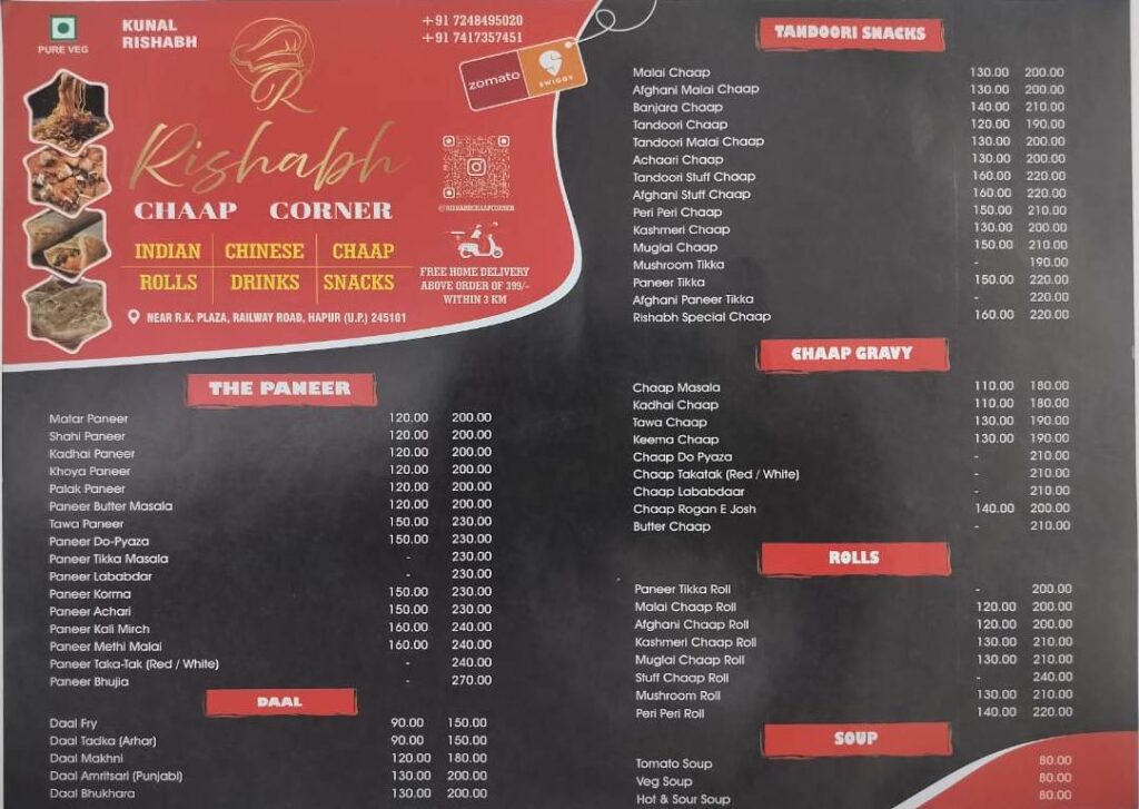 ऋषभ चाप कॉर्नर पर रोटी-सब्जी, चाऊमीन, चाप, रोल सब कुछ उपलब्ध: 7248495020