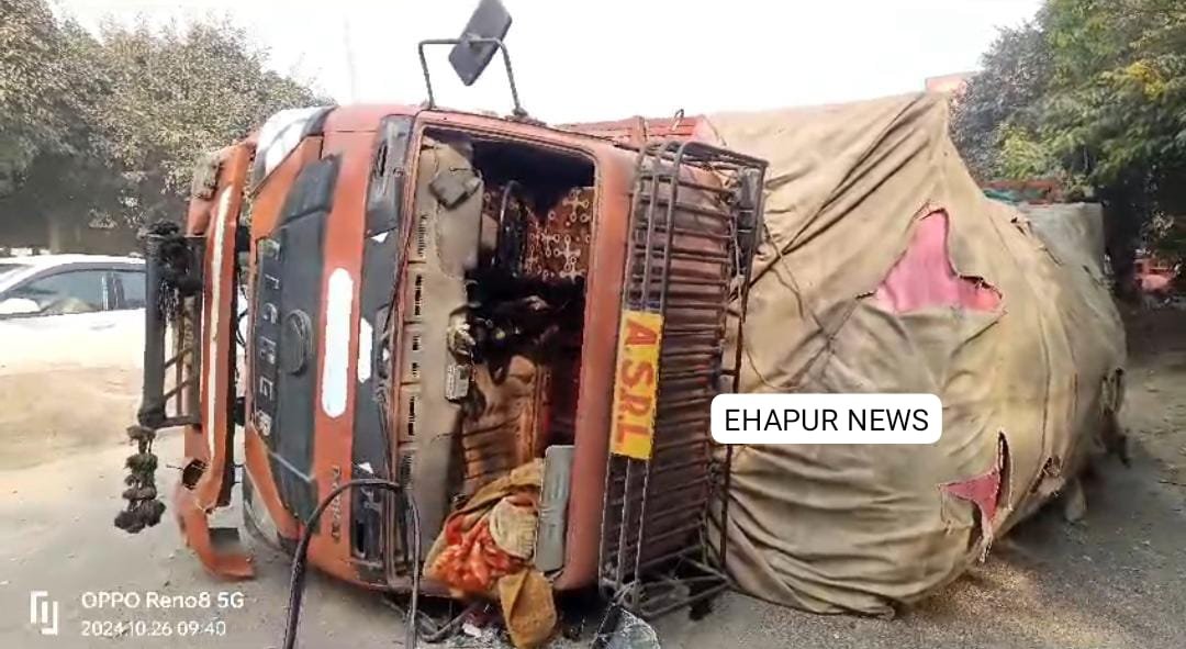 हापुड़, सीमन/संजय कश्यप (ehapurnews.com): हापुड़ की मेरठ रोड पर शराब से भरा केंटर बीती देर रात टायर फटने के कारण अनियंत्रित होकर पलट गया। इस दौरान चीख पुकार मच गई। गनीमत रही कि किसी को चोट नहीं आई। हालांकि ट्रक में लदी शराब की पेटियां क्षतिग्रस्त हो गई। सूचना पर पुलिस तथा आबकारी विभाग की टीम मौके पर पहुंची और मामले की जांच शुरू की।