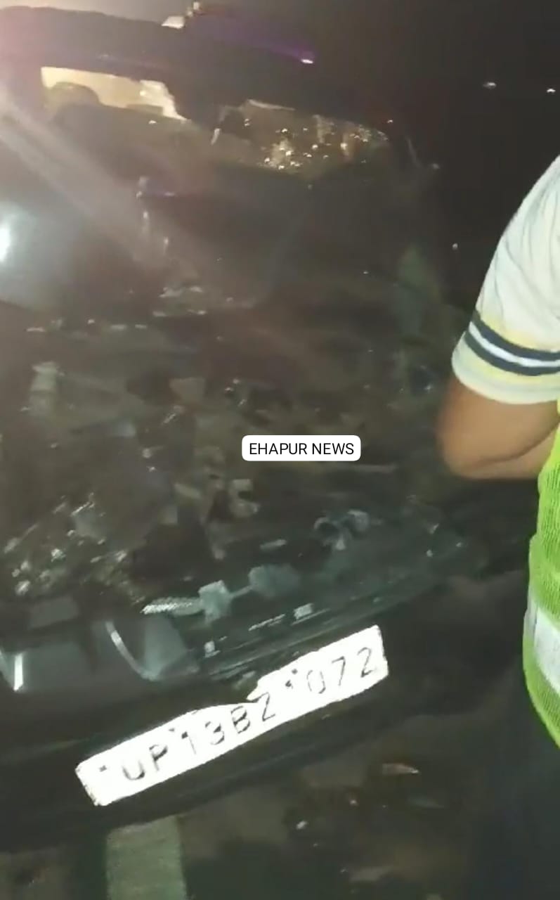 सड़क हादसे के दौरान गाड़ी हुई क्षतिग्रस्त