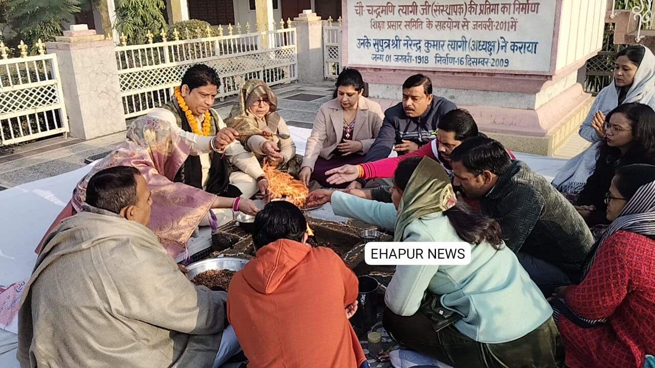 इस अवसर पर चौधरी ताराचंद जनता इंटर व डिग्री कॉलेज के अध्यक्ष व स्वर्गीय चौधरी चन्द्रमणि त्यागी के पौत्र अधिवक्ता मोहित चन्द्रमणि त्यागी ने सपत्निक अपनी माता व बड़े भाई अंकित त्यागी के साथ हवन कर संस्थापक को श्रद्धांजलि दी तथा उनकी प्रतिमा पर माल्यार्पण कर श्रद्धा-सुमन अर्पित किये।