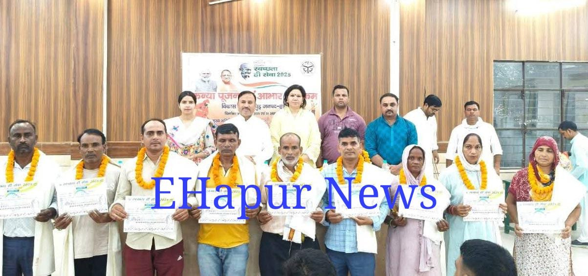 हापुड, सीमन (ehapurnews.com):हापुड ब्लॉक मुख्यालय पर मंगलवार को कन्या पूजन एवं सफाई कर्मचारियों के सम्मान समारोह का आयोजन किया गया।समारोह के मुख्य अतिथि हापुड विधायक विजयपाल आढती व ब्लॉक प्रमुख ममता तेवतिया ने कन्या पूजन के बाद सफाई कर्मचारियों को सम्मानित किया।विधायक ने प्रदेश सरकार की कल्याण कारी योजनाओ की जानकारी दी।बीडीओ हापुड़ श्रुति सिंह सहित अनेक प्रमुख लोग उपस्थित थे।