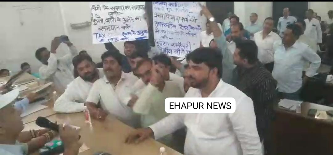 हापुड़ नगर पालिका की बोर्ड बैठक में पोस्टर लेकर सभासदों ने किया हंगामा