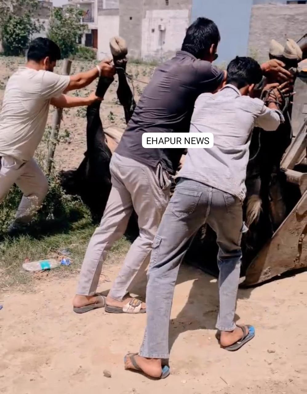 हापुड़, सीमन (ehapurnews.com): हापुड़ की मेरठ रोड पर स्थित एसपी आवास के पास नन्दी मृत अवस्था में मिले। इसके बाद मौके पर पहुंचे गौ सेवकों ने जेसीबी मशीन की मदद से गौवंश का अंतिम संस्कार कराया। इस दौरान गौ सेवक आकाश बेनीवाल, नितिन भाटी, प्रशांत कौशिक आदि उपस्थित रहे