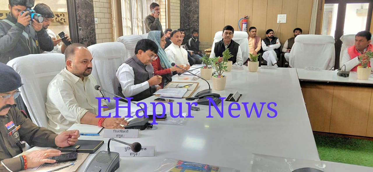 हापुड, सीमन (ehapurnews.com):हापुड़ स्थित कलेक्ट्रेट सभागार में सोमवार को जनपद हापुड में चल रहे विकास कार्यों को लेकर एक समीक्षा बैठक आयोजित की गई, जिसकी अध्यक्षता प्रदेश मंत्री व जनपद प्रभारी कपिल देव अग्रवाल ने की। जनपद हापुड़ स्थित कलेक्ट्रेट सभागार में महत्वपूर्ण समीक्षा बैठक आयोजित हुई।बैठक में जनपद में चल रहे विकास कार्यो,कानून व्यवस्था में और अधिक सुधार,नागरिकों की समस्याओ के त्वरित गति से निस्तारण तथा यातायात व्यवस्था में सुधार,सरकारी योजनाओ का लाभ पात्र व्यक्ति को अवश्य मिले आदि पर विचार विमर्श किया गया।