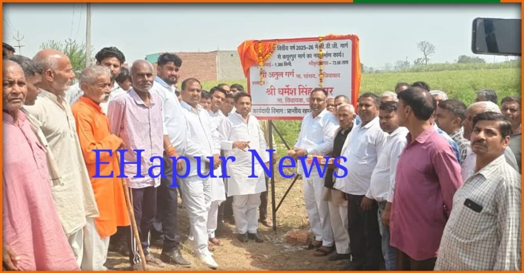 हापुड, सीमन (ehapurnews.com):जनपद हापुड की धौलाना विधानसभा क्षेत्र से भाजपा विधायक धर्मेश तोमर ने बुधवार को डी.डी.जी. मार्ग से कपूरपुर मार्ग तक सड़क नवनिर्माण कार्य (लंबाई 1.300 किमी, लागत 73.08 लाख रुपये) का शिलान्यास किया।उन्होने विश्वास जताया है कि सड़क निर्माण कार्य से क्षेत्र के लोगों को बेहतर आवागमन सुविधा मिलेगी और विकास को नई गति प्राप्त होगी।