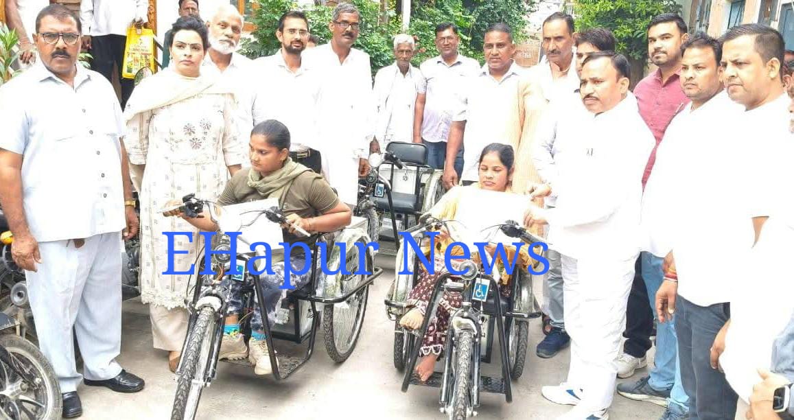 हापुड, सीमन (ehapurnews.com):हापुड के विधायक विजयपाल आढती ने सोमवार को चार दिव्यांगजन को मोटराइज्ड ट्राइसाइकिल का वितरण किया।वाहन पाकर दिव्यांगजन खुश नजर आए और कहा कि अब उनका चलना-फिरना आसान हो जाएगा।