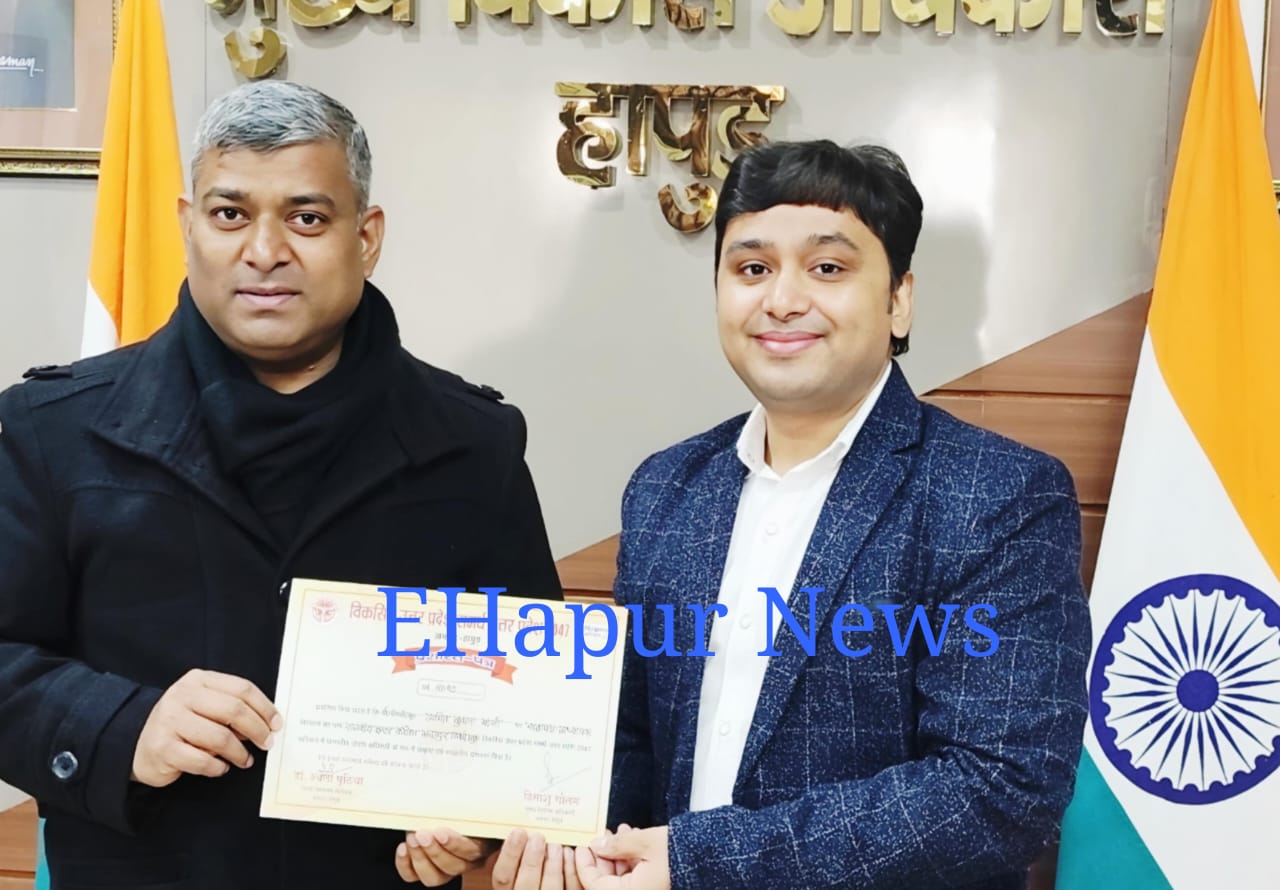 हापुड़,सीमन/सुरेश जैन(ehapurnews.com):विकसित उत्तर प्रदेश–समर्थ उत्तर प्रदेश 2047’ अभियान को जन-जन तक पहुंचाने और जिले में प्रभावी ढंग से क्रियान्वित करने के लिए मुख्य विकास अधिकारी हापुड़ ने जनपदीय नोडल अधिकारी श्री अमित कुमार शर्मा को प्रशस्ति पत्र देकर सम्मानित किया। यह सम्मान उनके द्वारा अभियान के दौरान विद्यालयों में QR कोड आधारित सुझाव संग्रहण, जनजागरूकता तथा शिक्षक-छात्र सहभागिता सुनिश्चित करने हेतु किए गए उत्कृष्ट कार्य के लिए प्रदान किया गया।