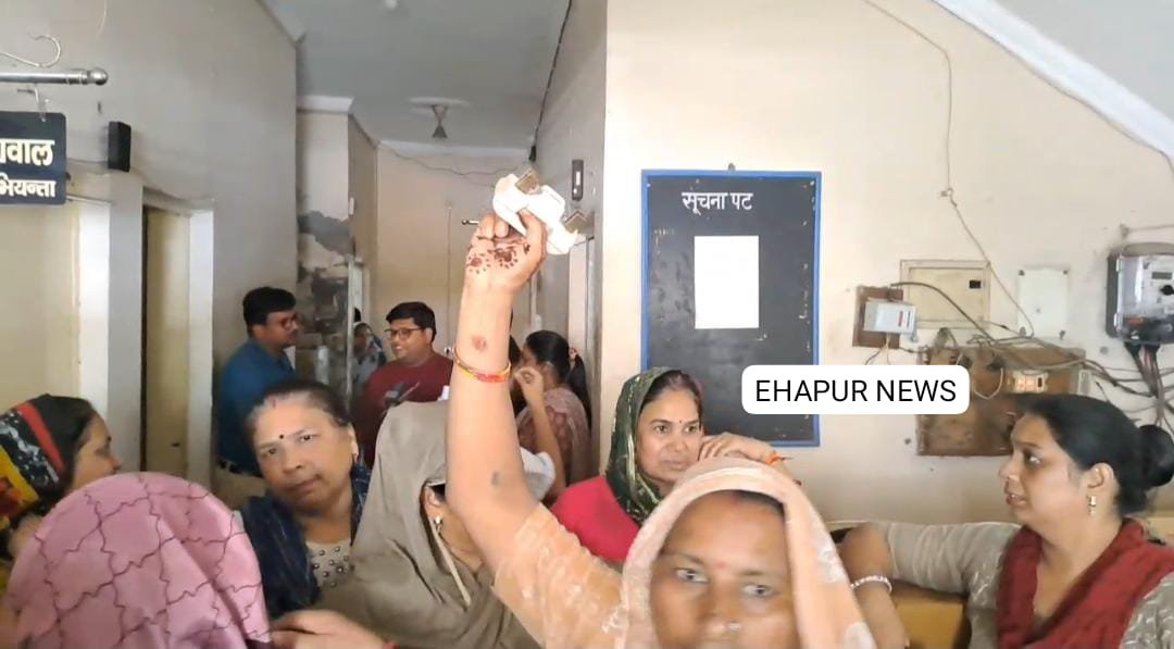हापुड़, सीमन/ संजय कश्यप (ehapurnews.com): हापुड़ के मोहल्ला वैशाली कॉलोनी की विद्युत आपूर्ति पिछले कुछ दिनों से प्रभावित है जिसकी वजह से महिलाओं का गुस्सा फूट पड़ा जिन्होंने मंगलवार को विद्युत अधीक्षण अभियंता के कार्यालय का घेराव कर जमकर विरोध प्रदर्शन किया। महिलाओं का गुस्सा इस कदर बढ़ गया कि उन्होंने अधीक्षण अभियंता कार्यालय का कट-आउट निकालकर विद्युत आपूर्ति ठप कर दी। इस दौरान कार्यालय में मौजूद कर्मियों ने महिलाओं को समझाने का प्रयास किया।