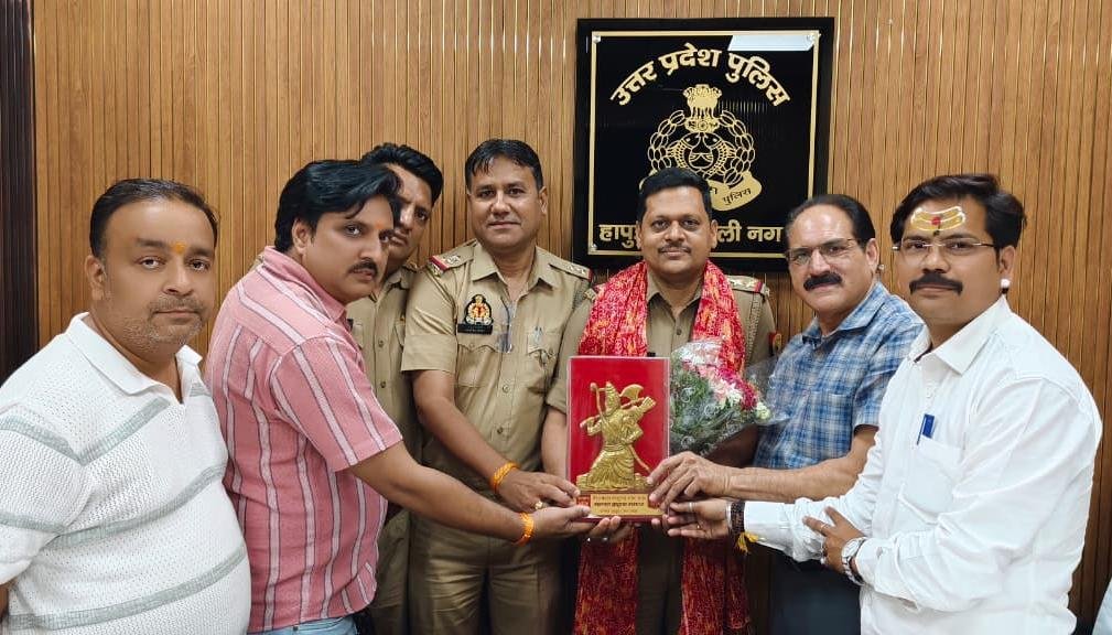 हापुड़, सीमन/अशोक तोमर (ehapurnews.com): समस्त ब्राह्मण समाज जनपद हापुड़ ने हाल ही में संपन्न हुई भगवान परशुराम की यात्रा की गरिमा और सुरक्षा बनाए रखने पर कोतवाल विनोद पांडे और उनकी समस्त टीम ने धन्यवाद किया। इस अवसर पर सभी ने पुलिस की कार्य प्रणाली की प्रशंसा की।