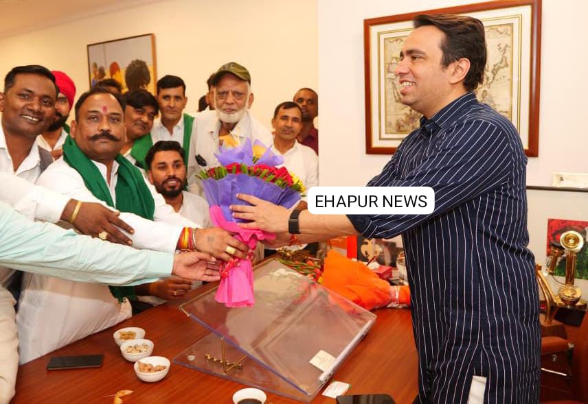 हापुड़, सीमन (ehapurnews.com): भारतीय किसान यूनियन स. के राष्ट्रीय अध्यक्ष सरंजीत सिंह अपने प्रतिनिधिमंडल के साथ दिल्ली पहुंचे जहां उन्होंने केंद्रीय मंत्री जयंत चौधरी से मुलाकात की और किसानों की समस्याओं से अवगत कराया। किसान संगठन ने कहा कि दोनों शुगर मिलों पर किसानों के गन्ने का बकाया भुगतान लगातार लंबित है जिसकी वजह से किसान आर्थिक संकट से जूझ रहा है। किसानों की समस्या का समाधान किया जाए। बाढ़ से फसलें प्रभावित हो गई है। उसका सर्वे करा कर किसानों को उचित मुआवजा दिलाया जाए।