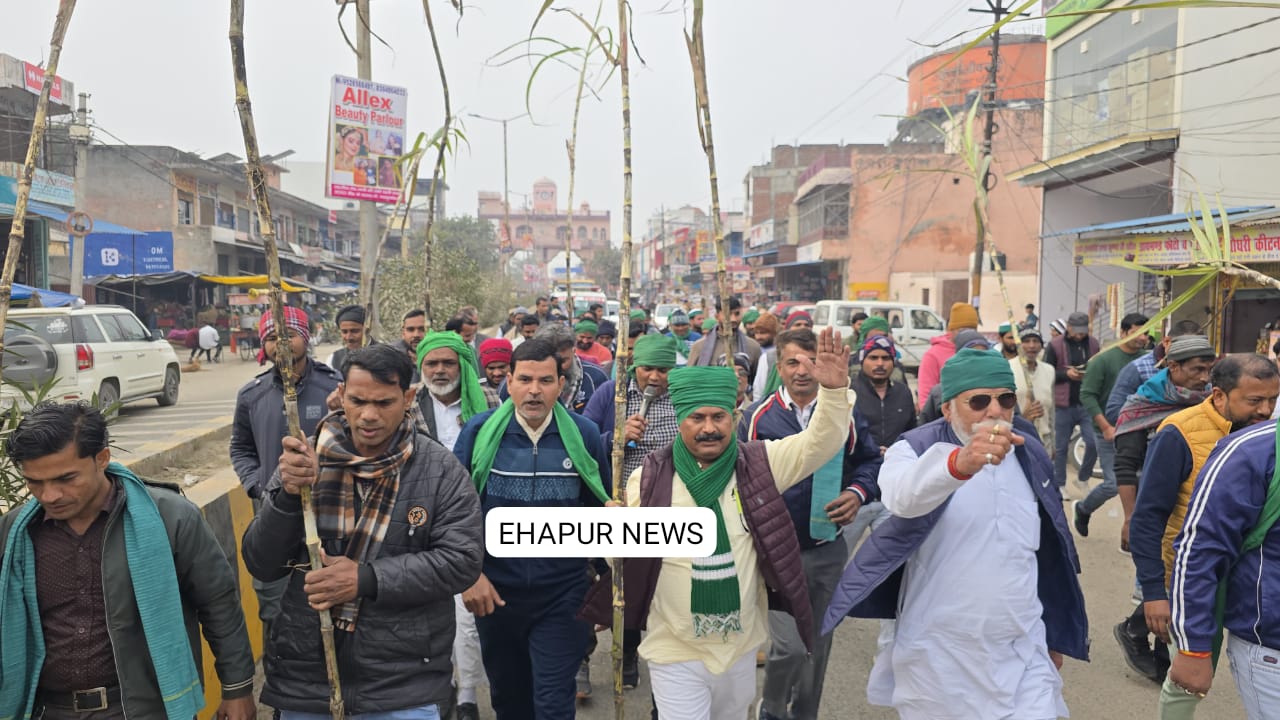 हापुड़, सीमन/अमित कुमार (ehapurnews.com): भारतीय किसान यूनियन टिकैत के कार्यकर्ताओं ने शनिवार को एक बार फिर गढ़ तहसील मुख्यालय पर अनिश्चितकालीन धरना शुरू कर दिया। किसानों की समस्याओं का समाधान न होने से नाराज किसानों ने भ्रष्टाचार के खिलाफ भी जमकर आवाज उठाई। हाथों में गन्ना लेकर किसानों ने तहसील मार्ग पर पैदल मार्च किया और कृषि मंत्री व चीनी मिलों के खिलाफ जमकर नारेबाजी की। इस दौरान किसानों ने बकाया गन्ना भुगतान की मांग भी जोर-शोर से उठाई।