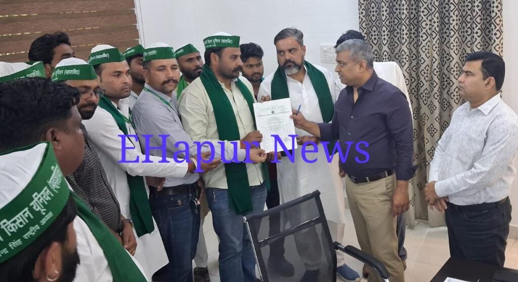 हापुड़, सीमन/अशोक तोमर (ehapurnews.com): जनपद के किसानों ने वर्षा से नष्ट हुई सरसों, गेहू व हरी सब्जियों के नुकसान के नुकसान का मुआवजा 20 हजार रुपए प्रति बीघा मांगा है। भाकियों (महाशक्ति) के जिलाध्यक्ष ठा. नितिन चौहारन की अगुवाई में शुक्रवार को किसानों ने मांग के समर्थन में एक ज्ञापन सीडीओ हिमांशु गौतम को दिया। किसानों ने स्मार्ट मीटर लगाए जाने का भी विरोध किया है।