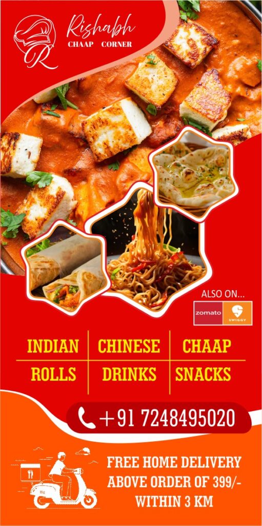 ऋषभ चाप कॉर्नर पर रोटी-सब्जी, चाऊमीन, चाप, रोल सब कुछ उपलब्ध: 7248495020