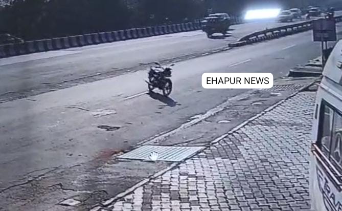 हापुड़, सीमन/रियाज़ अहमद (ehapurnews.com): जनपद हापुड़ के थाना पिलखुवा कोतवाली क्षेत्र के राष्ट्रीय राजमार्ग-9 पर एक बाइक पर सवार होकर जा रहे बाप-बेटे की बाइक अचानक रेलिंग से टकरा गई। टक्कर लगने के बाद दोनों मौके पर ही गिर गए। वहीं बाइक बिना किसी के हाईवे पर 100 मीटर तक दौड़ी जोकि पास स्थित एक ढाबे में जा घुसी। हादसे से जुड़ा सीसीटीवी फुटेज भी सामने आया है।