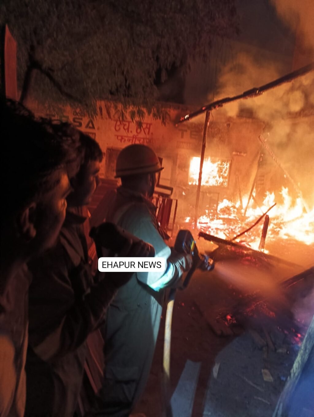 हापुड़, सीमन/ संजय कश्यप (ehapurnews.com): हापुड़ की मोदीनगर रोड पर बीती रात एक फर्नीचर के गोदाम में अचानक आग लग गई। आग लगने से हाहाकार मच गया। इस दौरान लाखों रुपए का सामान जल कर राख हो गया। सूचना मिलने पर दमकल विभाग की टीम के मौके पर पहुंची और आग पर काबू पाया। इस दौरान लाखों रुपए माल जल कर राख हो गया।