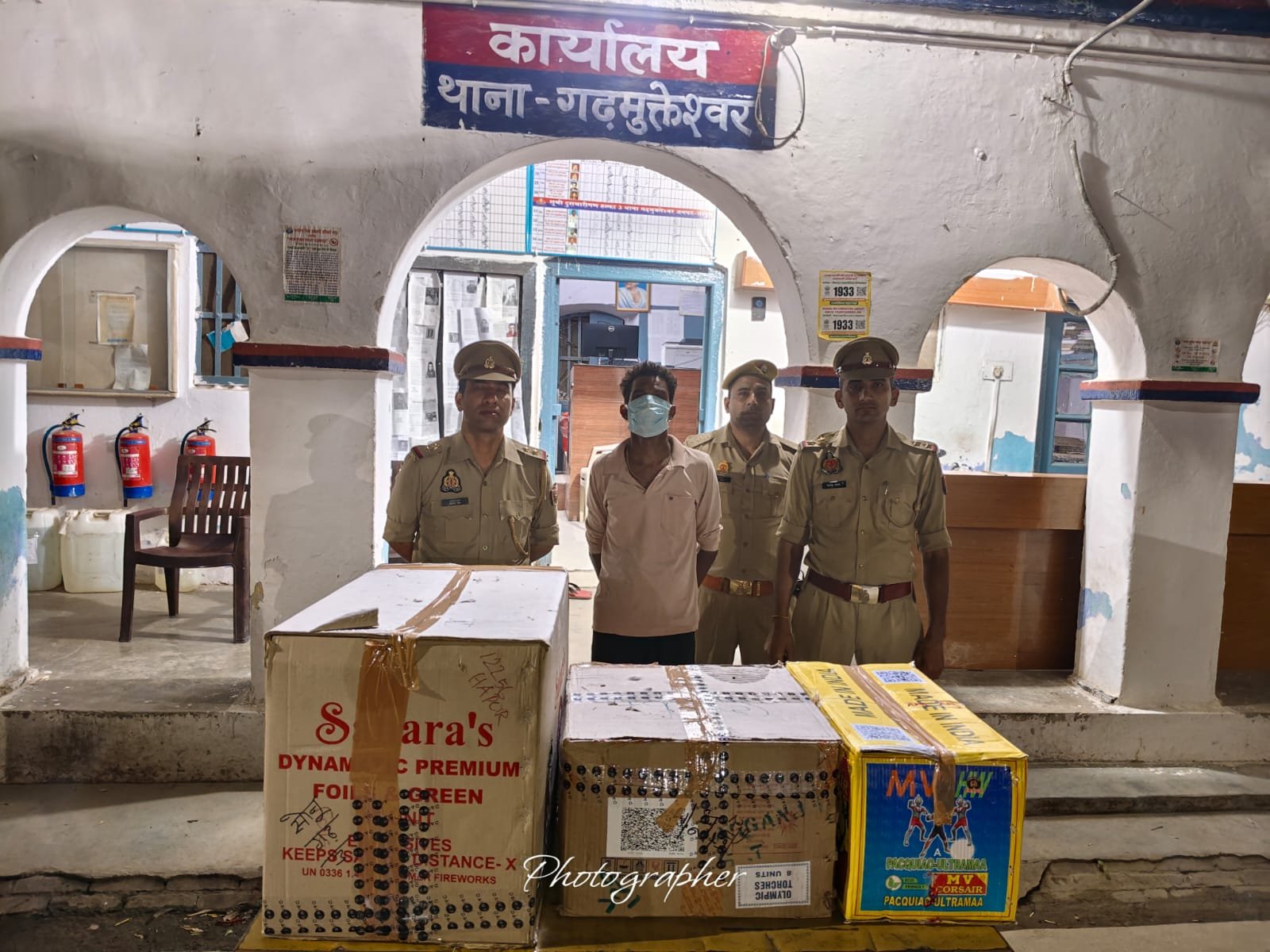 हापुड़ पुलिस द्वारा जनपद में अपराध की रोकथाम एवं पटाखे व विस्फोटक पदार्थ बेचने व भण्डारण करने वालों के विरूद्ध चलाए जा रहे अभियान के अन्तर्गत थाना गढ़मुक्तेश्वर पुलिस ने अवैध पटाखों का भण्डारण करने वाले एक दुकानदार को गिरफ्तार कर लिया जिसके कब्जे से 03 कार्टून अवैध पटाखे (कीमत करीब 01 लाख रुपये) बरामद किए है।आरोपी गढ़मुक्तेश्वर के नक्का कुआं निवासी सोनू है।पुलिस ने आरोपी को जेल भेज दिया है।