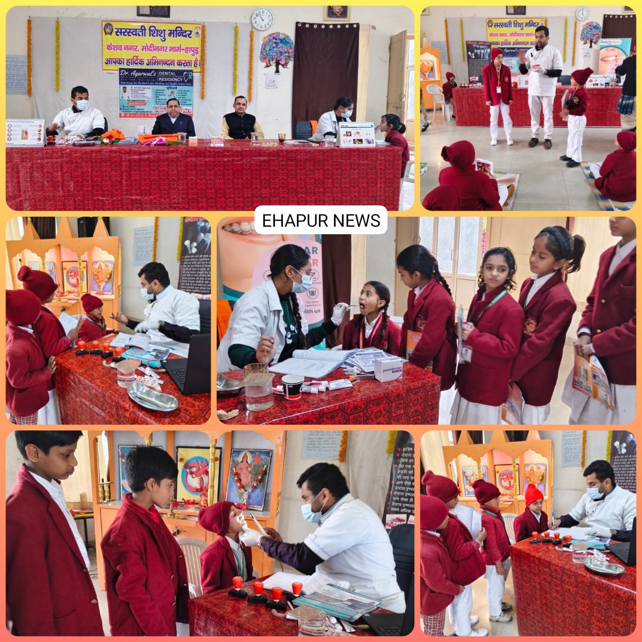 हापुड़, सीमन (ehapurnews.com): सरस्वती शिशु मंदिर, केशव नगर, मोदीनगर मार्ग हापुड़ में निशुल्क दंत चिकित्सा शिविर का आयोजन किया गया। हापुड़ नगर के दंत चिकित्सक डॉ आशीष अग्रवाल और डॉक्टर विशाखा के निर्देशन में विद्यालय के छात्र-छात्राओं के दांतों का चेकअप किया गया। अनुभवी दंत चिकित्सकों की टीम ने सभी शिशुओं के दांतों की बारीकी से जांच की। चिकित्सकों ने प्रत्येक शिशु के दांतों में कैविटी,मसूड़े की स्थिति और दांतों की बनावट का निरीक्षण किया। जिन शिशुओं के दांतों में समस्या पाई गई उन्हें उचित उपचार और चिकित्सक से मिलने की सलाह दी गई। चिकित्सकों ने शिशुओं को सही तरीके से ब्रश करने और मीठी चीजों के कम सेवन करने के बारे में जानकारी दी।