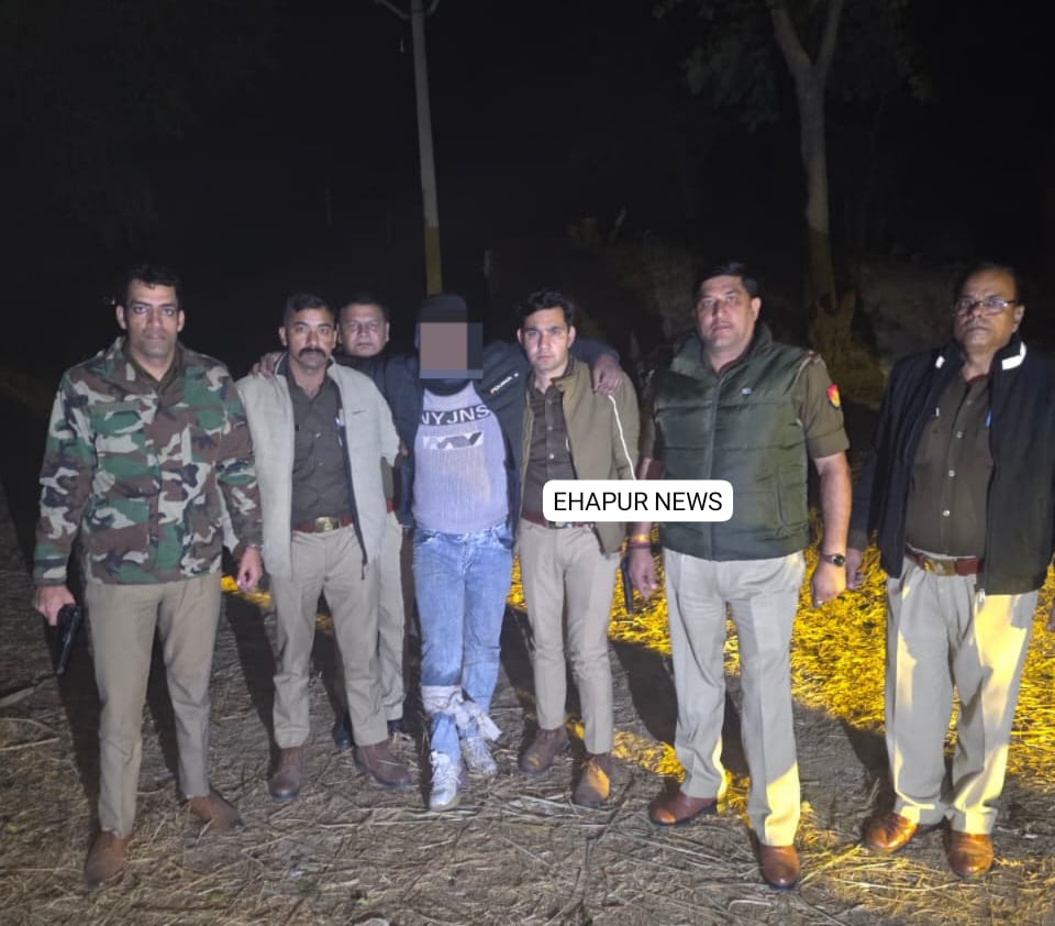 हापुड़, सीमन (ehapurnews.com): जनपद हापुड़ के थाना गढ़मुक्तेश्वर पुलिस की सोमवार को चेकिंग के दौरान गोकश बदमाश से मुठभेड़ हो गई। क्रॉस फायरिंग में बदमाश घायल हो गया जिसे पुलिस ने गिरफ्तार कर लिया। आरोपी के कब्जे से एक अवैध तमंचे मय जिंदा/खोखा कारतूस व एक बाइक बरामद हुई है। प्रारम्भिक पूछताछ में घायल/गिरफ्तार बदमाश ने अपना नाम इरफान उर्फ अलकान पुत्र रहीसूद्दीन कुरैशी उर्फ छोटे निवासी ग्राम दौताई थाना गढमुक्तेश्वर जनपद हापुड़ बताया है।सीओ वरुण मिश्रा ने बताया कि गिरफ्तार बदमाश शातिर किस्म का अपराधी/गौकश है जो थाना गढ़मुक्तेश्वर पर पंजीकृत मु0अ0स0 582/25 धारा 303(2), 317(2) बीएनएस में वांछित चल रहा था। गिरफ्तार बदमाश अभियुक्त इरफान उर्फ अलकान के विरुद्ध गौकशी, चोरी, आदि अपराधों के आधे दर्जन से अधिक अभियोग पंजीकृत है। पुलिस ने आरोपी को जेल भेज दिया है।