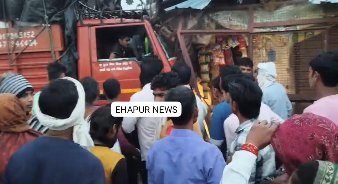 हापुड़, सीमन (ehapurnews.com): जनपद हापुड़ के गढ़मुक्तेश्वर क्षेत्र के गांव बलवापुर में गुरुवार की सुबह एक अनियंत्रित ट्रक किराने की दुकान से जा भिड़ा। सड़क हादसे के दौरान ट्रक क्षतिग्रस्त हो गया जबकि दुकानदार का भी नुकसान हो गया। इस दौरान लोग मौके पर पहुंचे और चालक व दुकानदार का हाल जाना। गनीमत रही कि किसी को चोट नहीं आई।