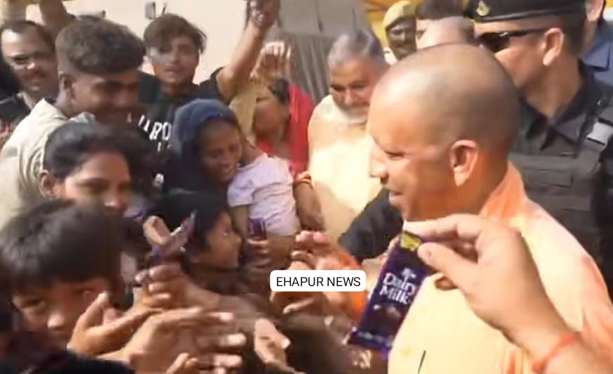 हापुड़, सीमन (ehapurnews.com): जनपद हापुड़ की तीर्थ नगरी गढ़मुक्तेश्वर के खादर में लगे कार्तिक मेले में पहुंचे मुख्यमंत्री योगी आदित्यनाथ ने रविवार को बच्चों को चॉकलेट बांटी। बच्चे इस दौरान सीएम योगी को बाबा जी कहकर पुकारते हुए दिखाई दिए। सीएम योगी ने बच्चों को चॉकलेट वितरित की और उनका हाल जाना।