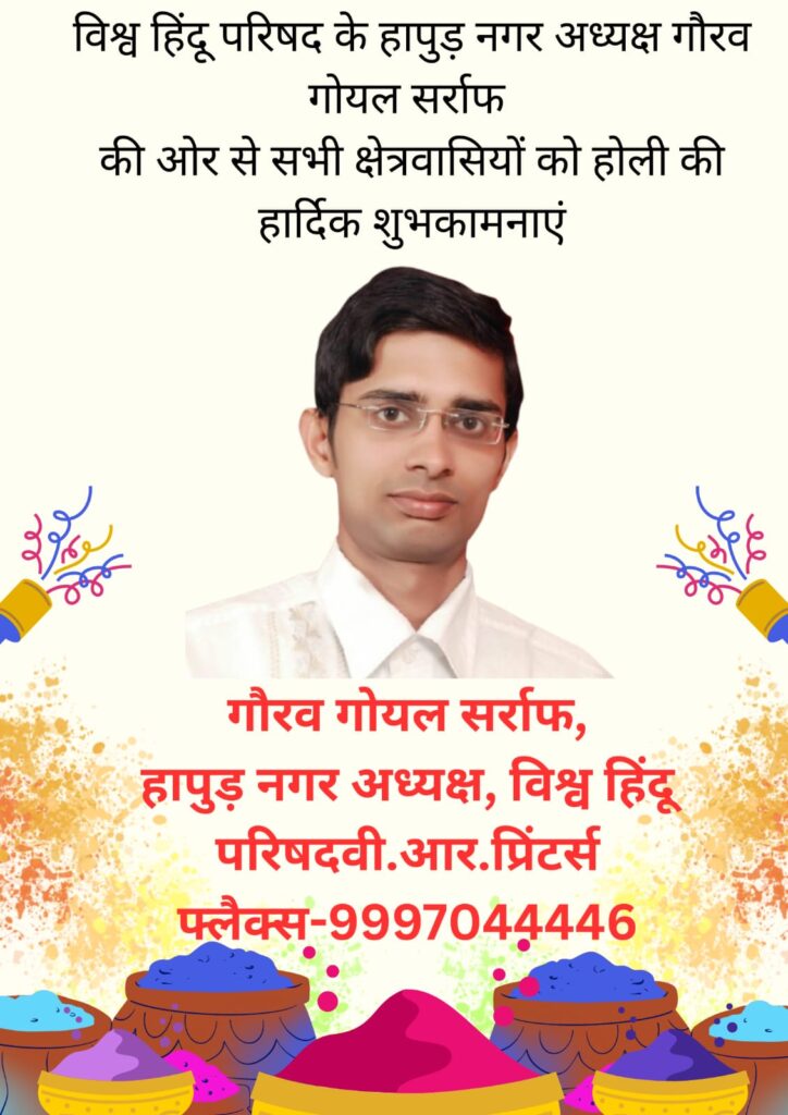 स्वर्णकार सिंह हापुड़ की ओर से सभी क्षेत्रवासियों को होली की हार्दिक शुभकामनाएं