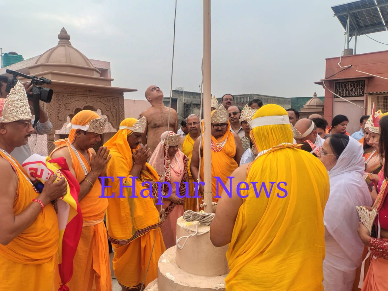 हापुड, सीमन/सुरेश जैन (Ehapurnews.com): श्री 1008 आदिनाथ दिगम्बर जैन मंदिर कसेरठ बाजार पर सोमवार प्रातःकाल सिद्ध चक्र विधान के लिए पूजन, ध्वजारोहण हुआ तथा महिलाओ की घट यात्रा निकाली गई। घट यात्रा आदिनाथ दिगम्बर जैन मंदिर कसेरठ बाजार से प्रारंभ होकर कोठी गेट, अतरपुरा, गोल मार्किट होते हुए आदिनाथ दिगम्बर जैन मंदिर पर समाप्त हुई। श्री 108 आचार्य नमोस्तु सागर जी महाराज के सानिध्य मे बाल ब्रह्मचारिणी रचना दीदी ने पूजन सम्पन्न कराया और ध्वजारोहण किया गया। कल से सिद्ध चक्र विधान पाठ प्रारंभ होगा। जैन समाज के अध्यक्ष अनिल जैन, महामंत्री अशोक जैन, मंत्री आकाश जैन, संरक्षक सदस्य सुधीर जैन, कोषाध्यक्ष सुखमाल जैन, प्रदीप जैन, पुलकित जैन,नितिन जैन, सुधीर जैन, सुरेश चन्द जैन, राजीव जैन, अभिषेक जैन, सजींव जैन, आशीष जैन, आर के जैन एडवोकेट, मनीष जैन,तुषार जैन, प्रवीण जैन, प्रभा जैन, बबीता जैन, रेखा जैन,मनीषा जैन, रेणुका जैन,गरिमा जैन,विनोद बाला जैन, स्नेह लता जैन,कविता जैन, वसुधा जैन, डाoरेखा जैन,वन्दना जैन, भावना जैन, सरोज जैन, दीपाली जैन, मंजू जैन,नीतू जैन सहित जैन समाज के अनेक भक्त उपस्थित हुए। राजेश जैन, श्वेता जैन परिवार के सौजन्य से वात्सल्य भोज का आयोजन हुआ।