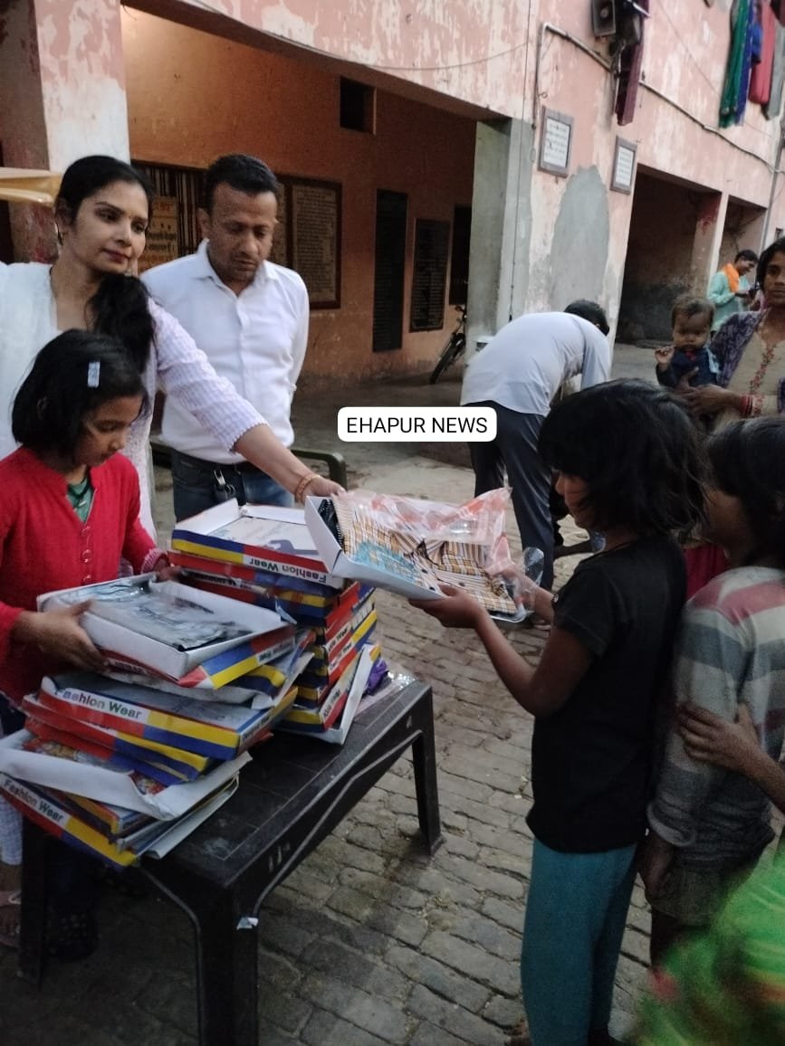 हापुड़, सीमन (ehapurnews.com): माहेश्वरी सभा रजि हापुड़ के तत्वावधान में स्व. कैलाशवती देवी दयाल महेश ट्रस्ट द्वारा श्री पंचायती गौशाला हापुड़ की दोनों शाखाओं में 0 बर्ष से लेकर 06 बर्ष तक के 80 बच्चों को नये वस्त्र भेंट किए गए।