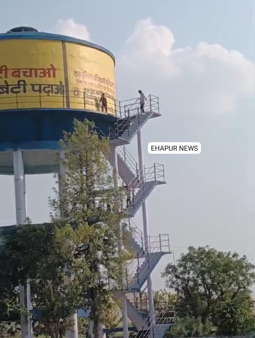 पानी की टंकी पर बने प्लेटफार्म पर चढ़े आधा दर्जन युवा